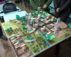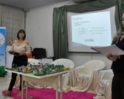 Um dos relatos foi o das professoras Eleia e Sabrina, que apresentaram aos colegas a experiência realizada na Escola Básica Municipal Vila Rica. Para trabalhar formas geométricas, conteúdo curricular, surgiu a ideia de construir maquete com letramento, saneamento, cores, matemática, zona urbana e zona rural. De acordo com Eléia Maria Riva, Professora Instrutora de Libras na EBM Vila Rica Fases I e II, o a troca de experiência entre os professores é muito importante. O Projeto Ideias além do Giz é uma proposta excelente porque são experiências e ideias bem significativas que podemos ter como base para recriarmos novas atividades agregando muito ao nosso trabalho, comentou. Sabrina Graziele Marca, Professora Regente das fases I e II na EBM Vila Rica, destacou que as boas ideias precisam ser levadas para outras pessoas, para que aproveitem em suas escolas e dia a dia de trabalho. Foi um desafio lançado e nós nos sentimos motivadas a realizar este trabalho, apresentar aos colegas uma atividade nossa que deu certo é muito gratificante, finalizou.
