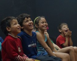 O Centro de Artes e Esportes Unificados, no Bairro Efapi, recebeu por dois dias consecutivos o Espetáculo Teatral Cambito Vocacionado. Crianças, adolescentes, pais e mães, assistiram às sessões gratuitas, riram e se emocionaram com a história do Cambito, que está a procura de um emprego e descobre sua vocação: ser palhaço.