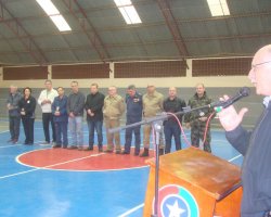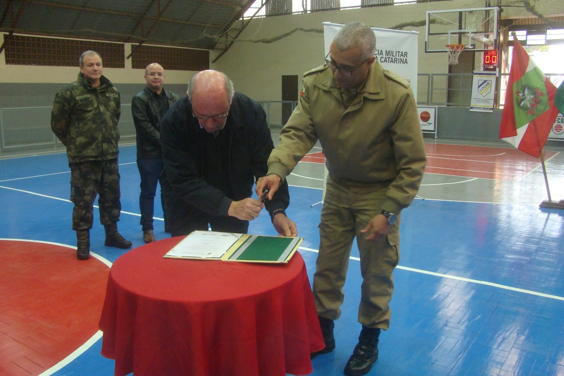 Com investimento de R$ 110 mil, foi inaugurada na terça-feira (31/08) a revitalização do Ginásio de Esportes do Segundo Batalhão de Polícia Militar de Chapecó que, entre outros esportes, será a casa oficial do basquetebol. O evento reuniu autoridades esportivas, empresários que auxiliaram na reforma, atletas e o Secretário de Juventude, Esporte e Lazer Ivan Carlos Agnoletto que representou o Prefeito Luciano Buligon.