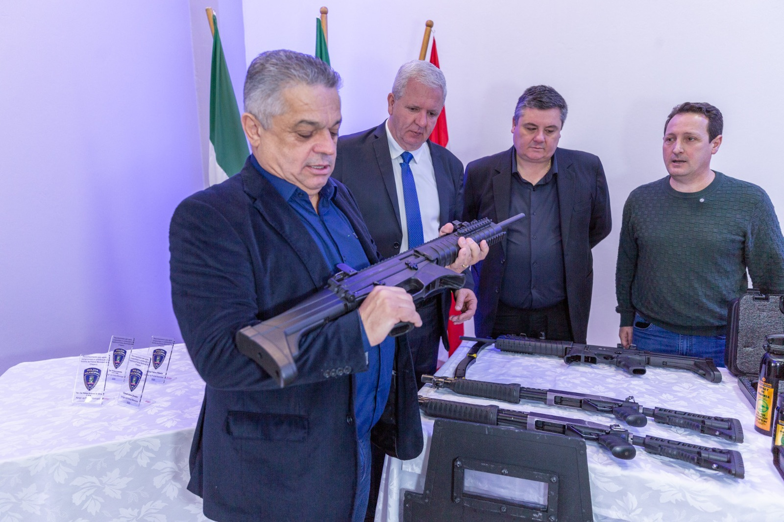 O prefeito João Rodrigues, durante o evento, assinou edital que abre inscrições para o novo concurso para a Polícia Municipal de Chapecó. Estão previstas, 45 novas vagas. Com isso, teremos 134 policiais municipais, o terceiro maior de Santa Catarina, revelou. Além disso, o prefeito autorizou a compra de quatro novos fuzis e duas viaturas da corporação serão blindadas.