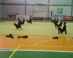 A atual equipe juvenil vem treinando junto há cerca de nove anos e a busca da perfeição é constante. O material humano existe, mas a carência de uma estrutura adequada exige mais das ginastas que dividem o tempo entre os treinamentos, a vida social e escolar, os consultórios e clínicas médicas. De acordo com Cristiane, a falta de um piso adequado para a ginástica rítmica causa muitas lesões de tornozelo e fratura de dedos por estresse. Nos Joguinhos Abertos uma das meninas atuou com dois dedos fraturados, revela Cristiane. É possível observar de perto nos treinos a dedicação e o extremo que se exige dos corpos. Mesmo com estrutura menor, Chapecó tem feito frente a potências da GR em Santa Catarina, como Blumenau e Joinville e até Florianópolis que possui quatro tablados para esse esporte, afirma ela.