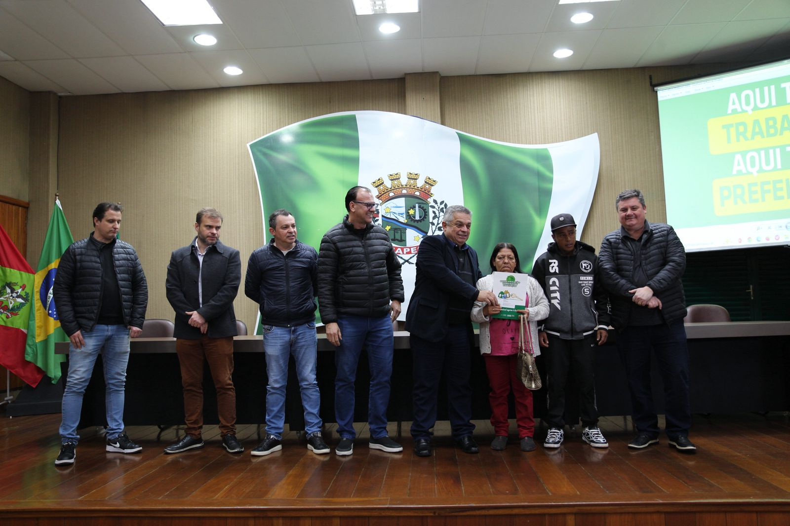 A Prefeitura de Chapecó, por meio da Diretoria de Habitação e Regularização Fundiária, realizou na noite desta terça-feira (26), ato de entrega de Registros de Matrícula dos Imóveis Regularizados dos Núcleos Urbanos Rua Margaridas, Lajeado São José PSH e Horto.