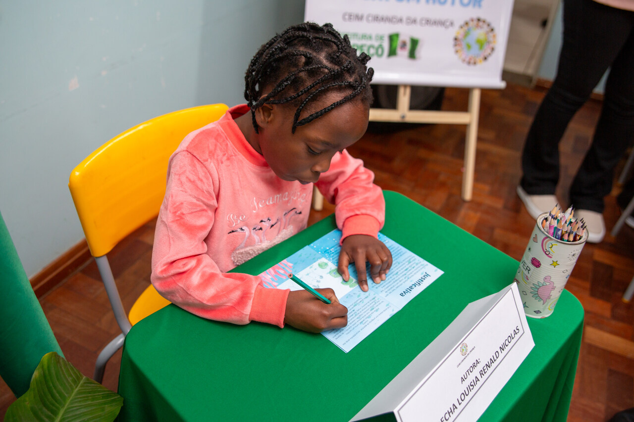 Na manhã desta segunda-feira (22), os estudantes da pré-escola do CEIM Ciranda da Criança realizaram o lançamento de um livro criado por eles, com o tema “peixes”, fruto das descobertas realizadas em sala de aula, sob a orientação da professora Rudinéia Vieira. O evento contou com uma sessão de autógrafos, que reuniu as famílias das crianças, a equipe escolar e membros da comunidade. O espaço foi cuidadosamente preparado para destacar todo o percurso de aprendizado e criação vivenciado pelos pequenos autores.
