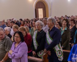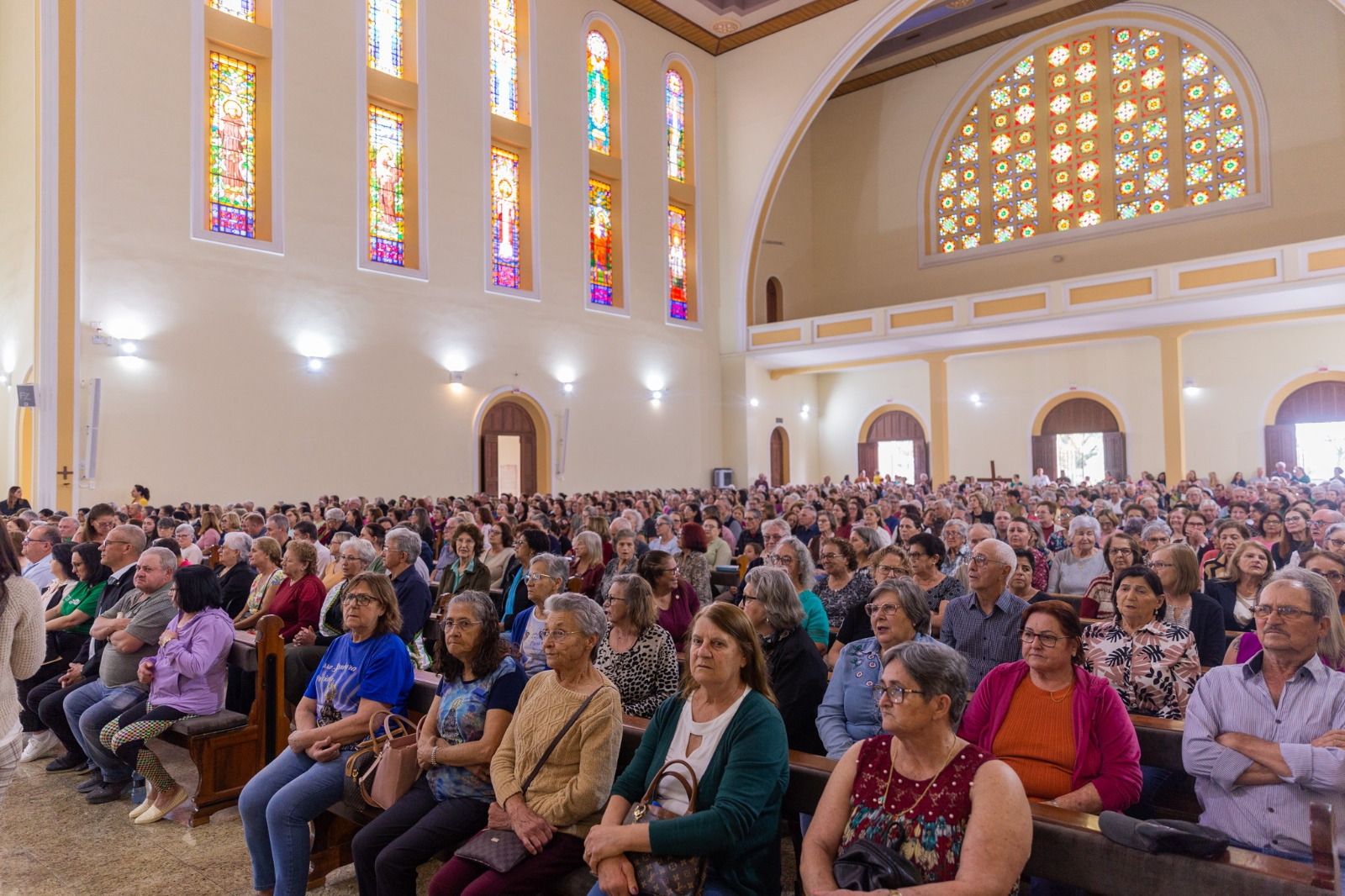 A prefeitura de Chapecó, por meio da secretaria da Família e Proteção Social, organizou uma missa em celebração ao Dia Internacional do Idoso, na tarde de quarta-feira (1), na Catedral Santo Antônio. Além da missa conduzida pelo arcebispo Dom Odelir Magri, a tarde foi marcada por homenagens e momentos de grande emoção para todos os presentes. Estiveram presentes o secretário da Família e Proteção Social, Luciano Hüning, e a primeira-dama do município, Fabiana Rodrigues, parabenizando todos os idosos e os homenageados.