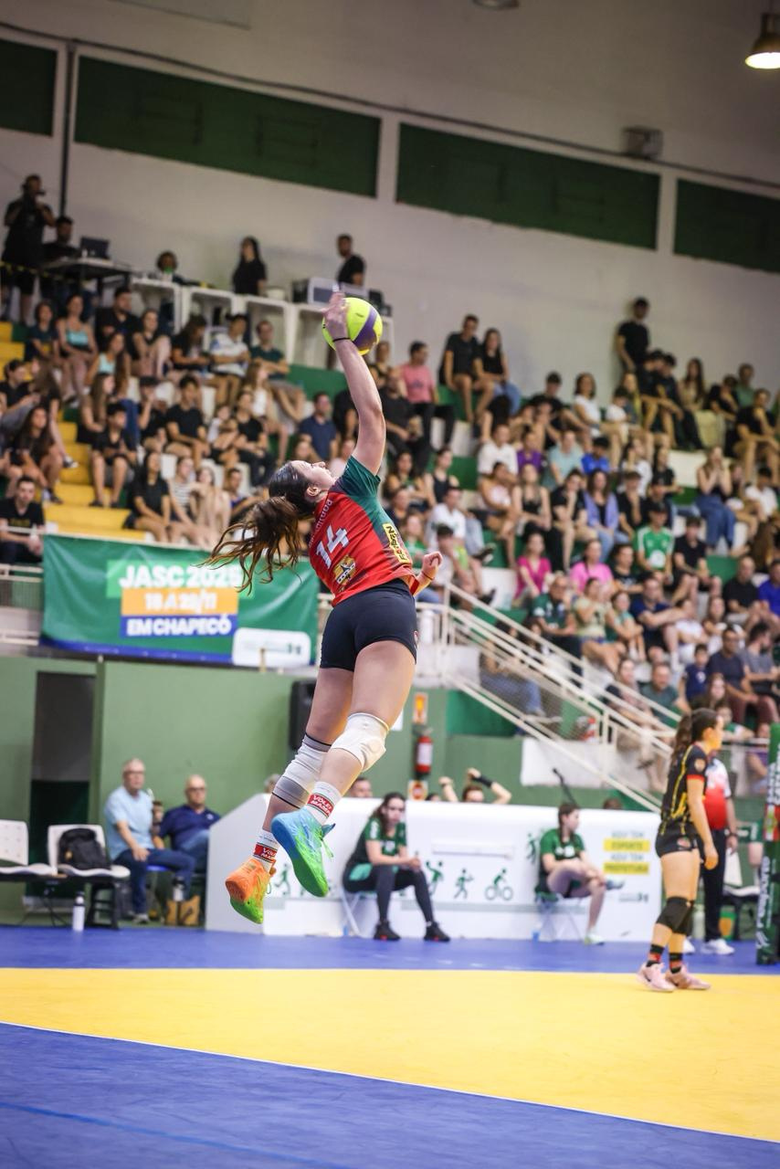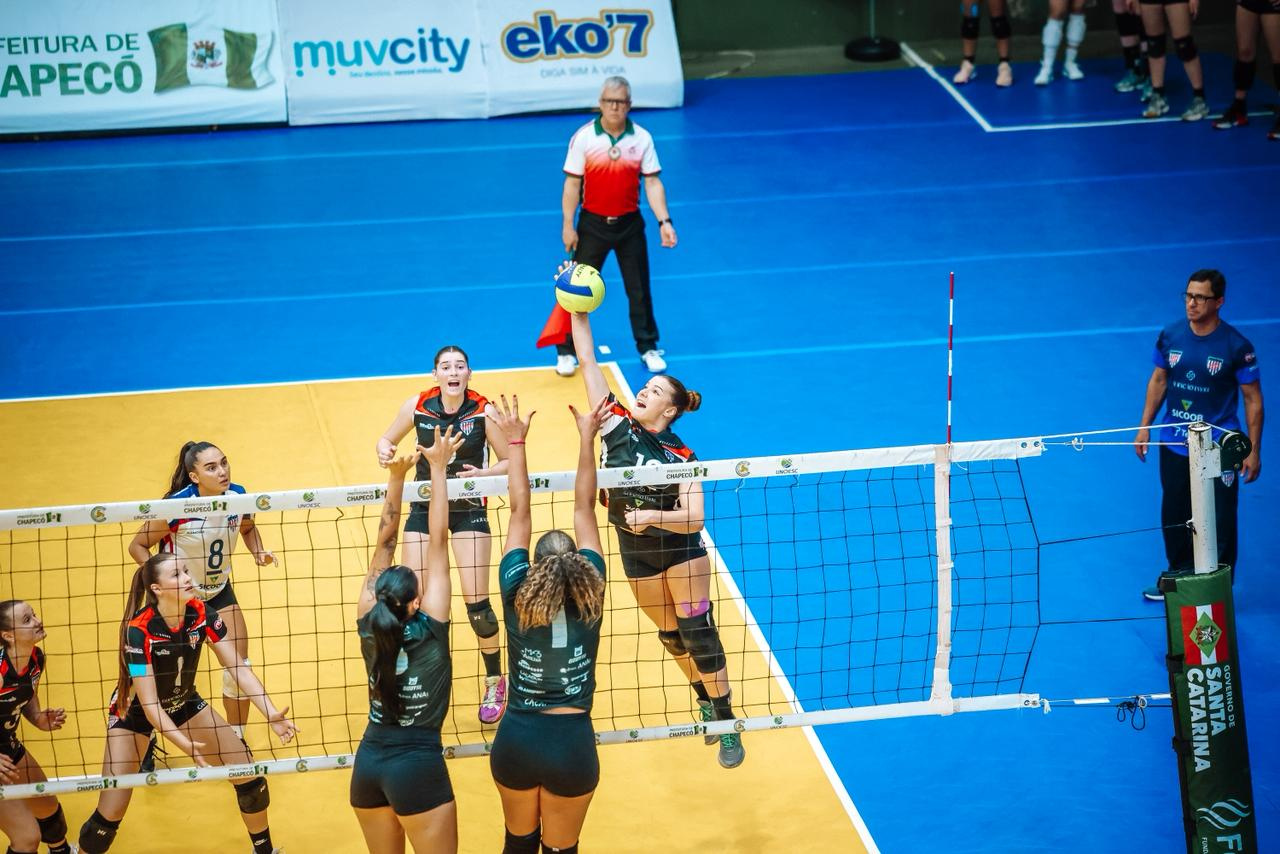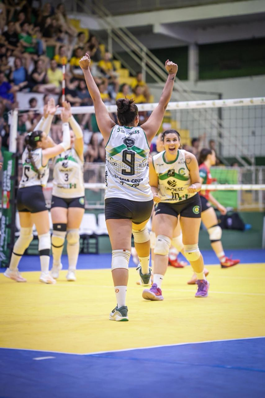 O voleibol feminino também está na semifinal. Nesta quinta-feira, vitória por 3 sets a 0 sobre Criciúma. Amanhã, pela semifinal, enfrentam Brusque às 19h, no Ginásio Ivo Silveira.