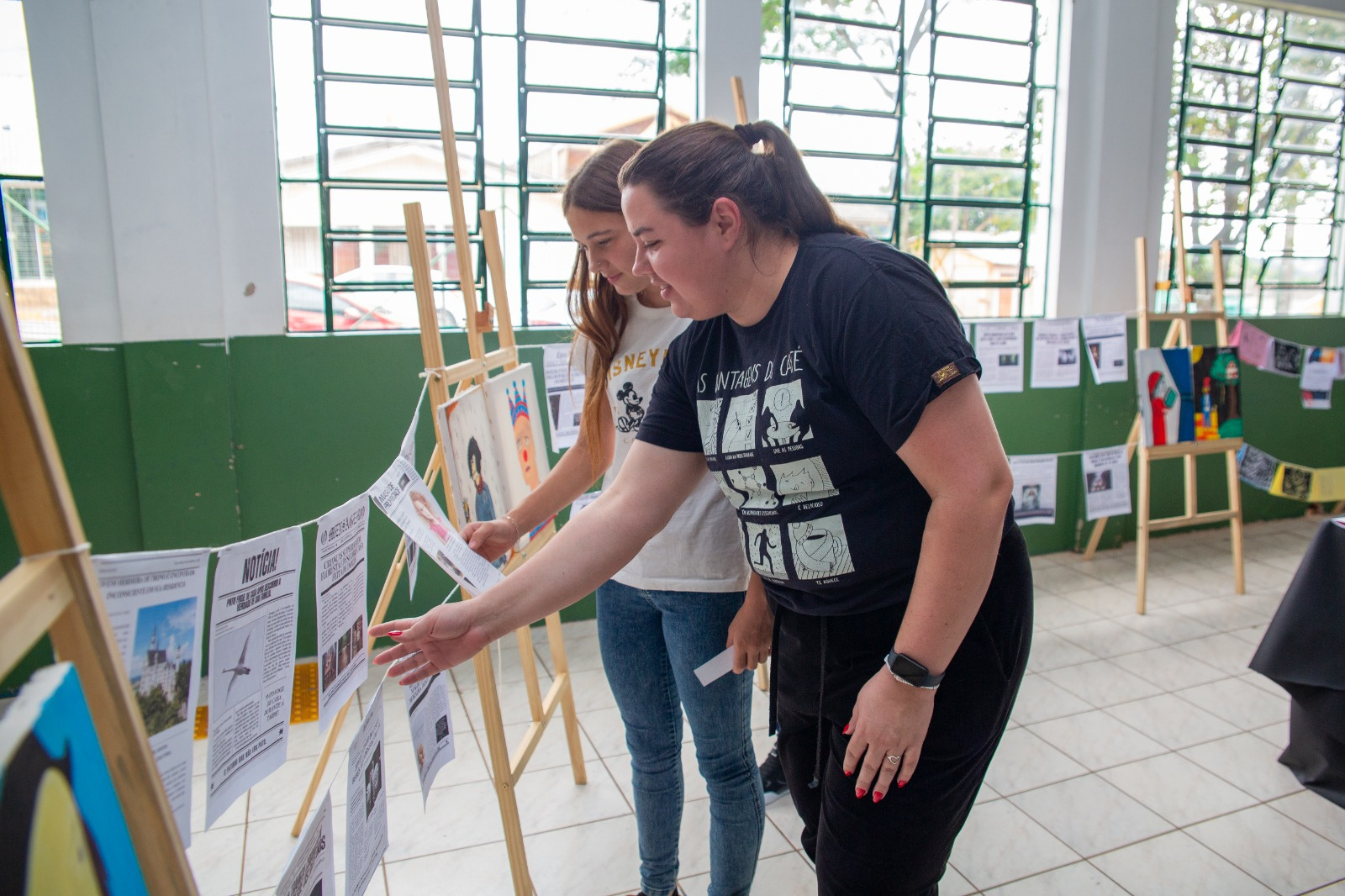 As atividades envolveram turmas do 6º ao 8º ano, nos componentes curriculares de arte, língua portuguesa e língua inglesa, além de ações do projeto Clube da Leitura, promovido na sala EITC, sendo mediado pelas professoras Djúlia Laís Zilk, Daniele Klein, Gesieli Raquel Schonberger e Keila Orso.