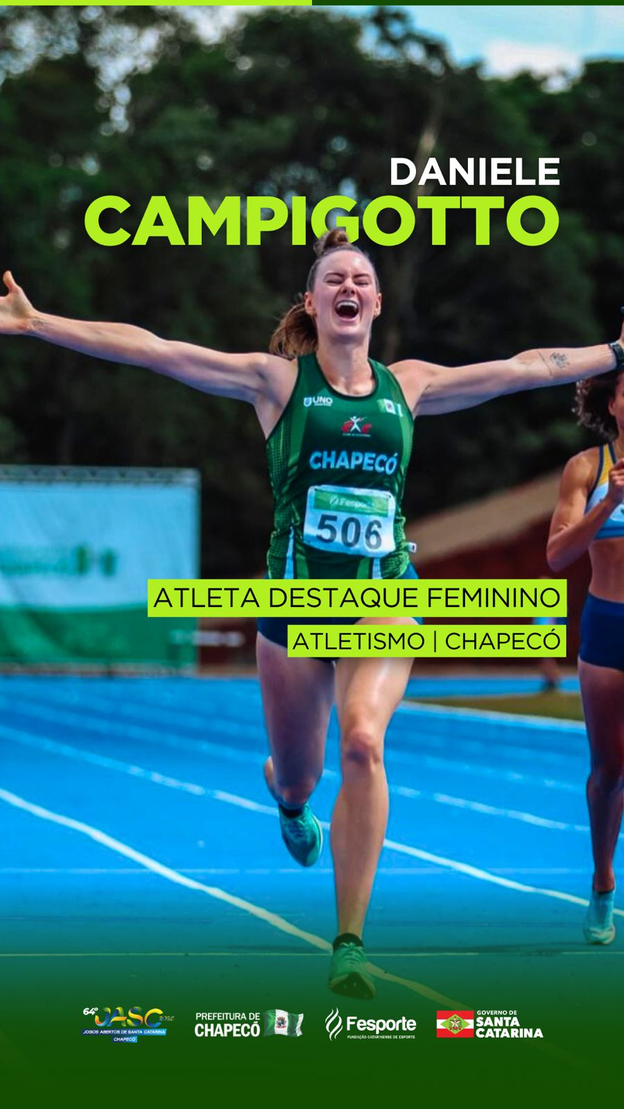 A premiação não era realizada desde o ano de 2021 e premia os atletas destaques da etapa estadual dos Jogos Abertos de Santa Catarina que está na reta final aqui em Chapecó. Daniele foi escolhida em votação dos jornalistas credenciados para cobrir o evento. Nesta edição ela conquistou três medalhas de ouro, nos 100 metros, 200 metros e revezamento 4x100m. Também quebrou o recorde dos 100 metros, com 11seg49.