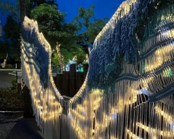 Uma casa decorada com 1,1 mil peças de crochê uma estrutura de asas com seis metros de largura, feitas em macramê, são algumas das novidades da decoração natalina do Ecoparque de Chapecó.