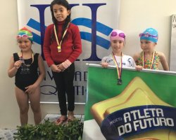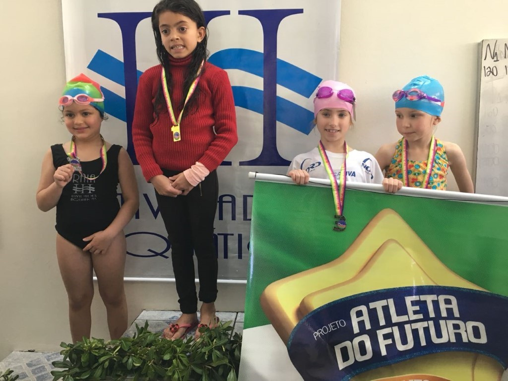 Destaque para as alunas do Projeto Atleta do Futuro Eduarda Boita de 10 anos, que conquistou uma medalha de ouro nos 40m borboleta e uma medalha de prata nos 40m livre, e Laura Dorneles, 07 anos, que garantiu uma medalha de prata nos 40m livre e uma medalha de bronze nos 40m costas. A equipe foi comandada pelas professoras Divone Possamai, Cecília Possamai Marafon e Camila Romanzini Skonetzky.
