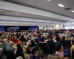 A Prefeitura de Chapecó, por meio da secretaria da Família e Proteção Social, promoveu nesta quinta-feira (11) a tradicional Festa de Encerramento do Ano dos Grupos de Idosos, reunindo mais de 60 grupos e um total de 3 mil participantes para um dia de celebração, integração e alegria. O evento contou com uma programação diversificada que começou com um momento de fé e gratidão, entrega de presentes, seguido de almoço, presença do Papai Noel e uma matinê.
