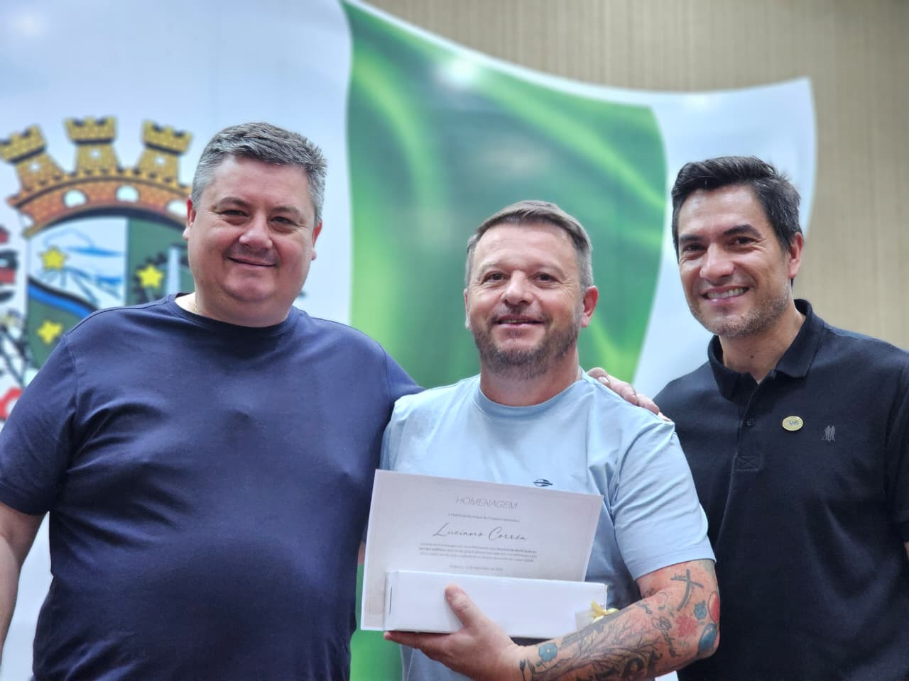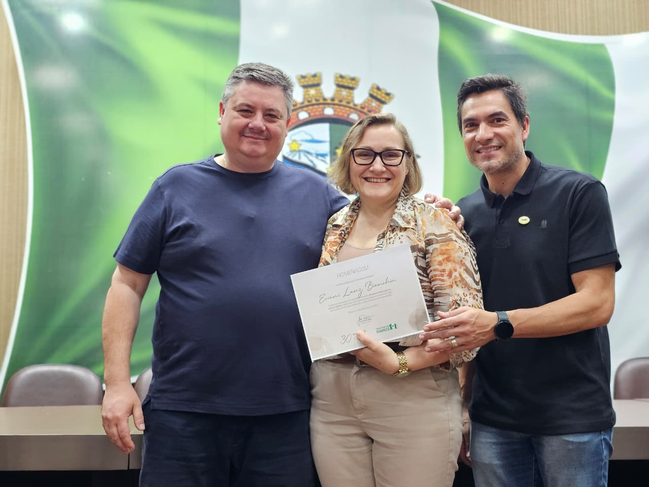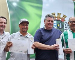 Também estiveram presentes no ato o vice-prefeito, Valmor Scolari, o secretário de Administração, Clodoaldo dos Santos; além de outros secretários, vereadores, servidores e familiares dos homenageados.