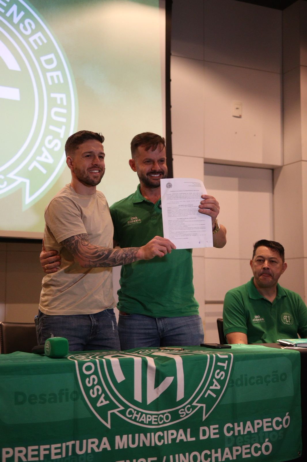 A apresentação ocorreu na manhã desta quarta-feira (17/12), no auditório do Slaviero Hotel, em Chapecó. O ato contou com a presença de dirigentes da Chape Futsal, colaboradores do clube, patrocinadores e imprensa. Alê chegou acompanhado da esposa, Caroline, e dos filhos, Oliver e Maya. Ele assinou contrato por duas temporadas (2026 e 2027) e recebeu a camisa personalizada, com o número 23, de Rafael Mucelini, da Classic, fornecedora de material esportivo da equipe verde-branca.