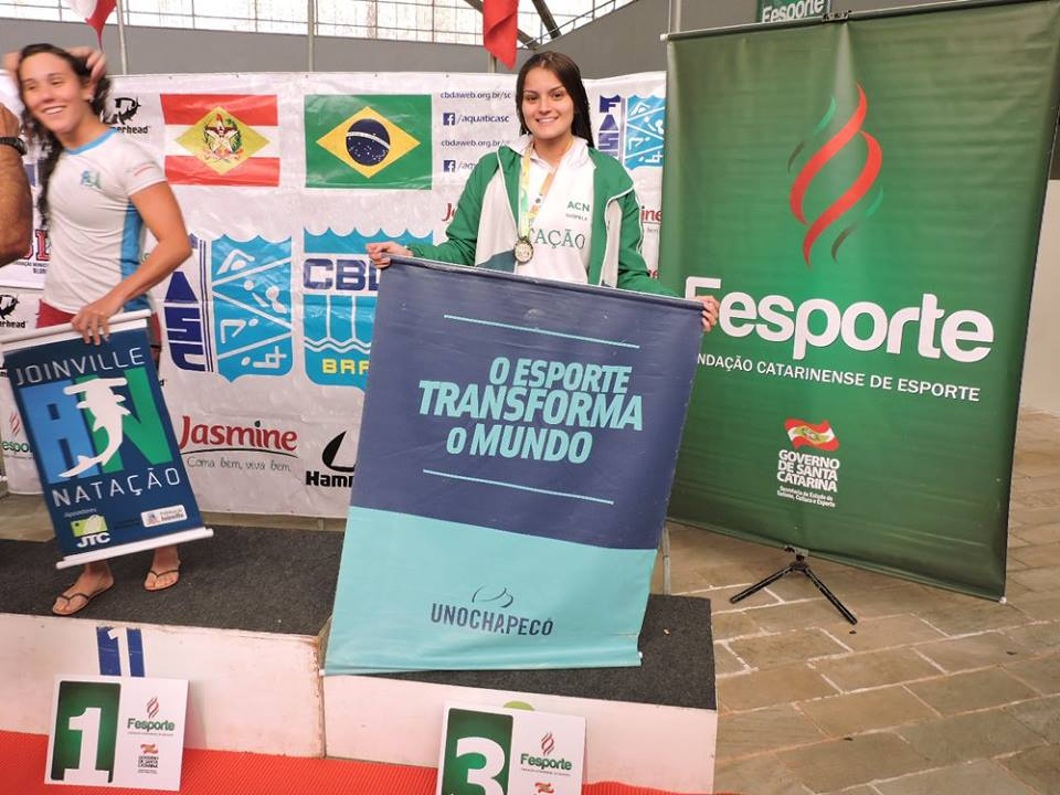 A equipe da Associação Chapecoense de Natação - ACN / AQUATIC CENTER / UNOCHAPECÓ / ALGA MÓVEIS / PMC, recebeu mais uma vez a convocação de dois atletas para integrar a Seleção Catarinense da modalidade em duas competições nacionais, os Jogos Escolares e os Jogos Universitários.