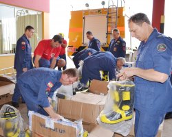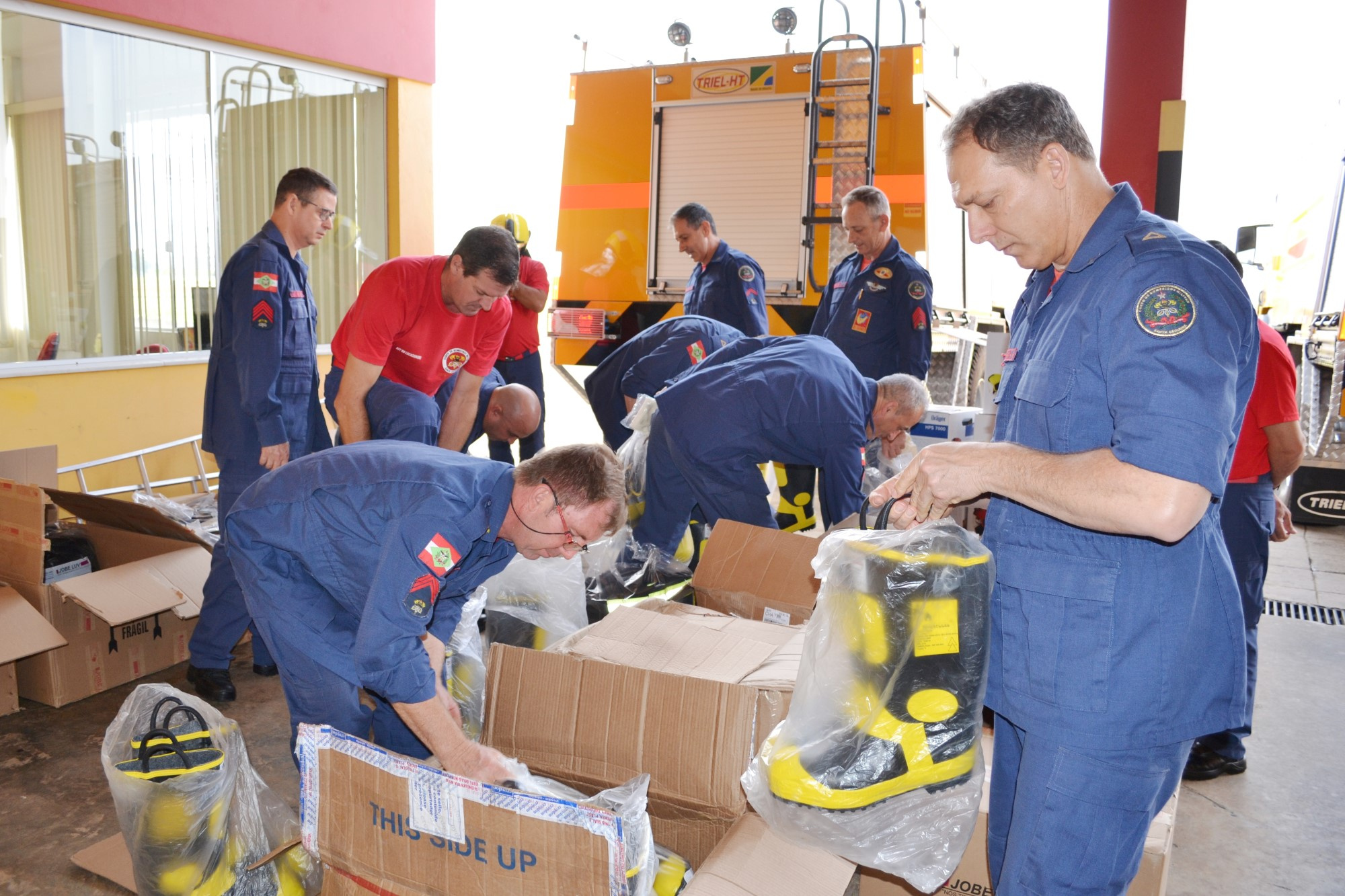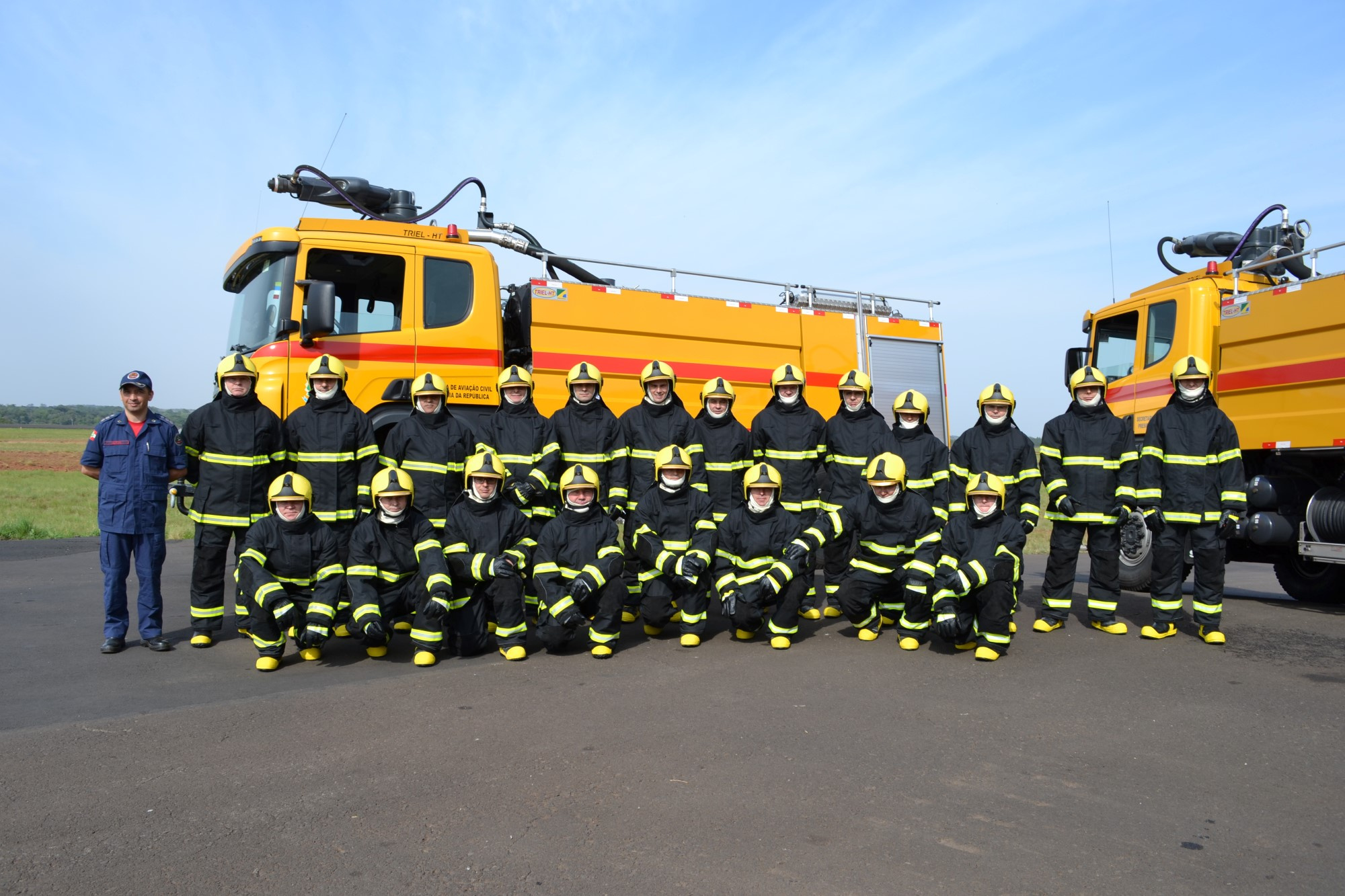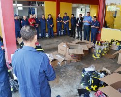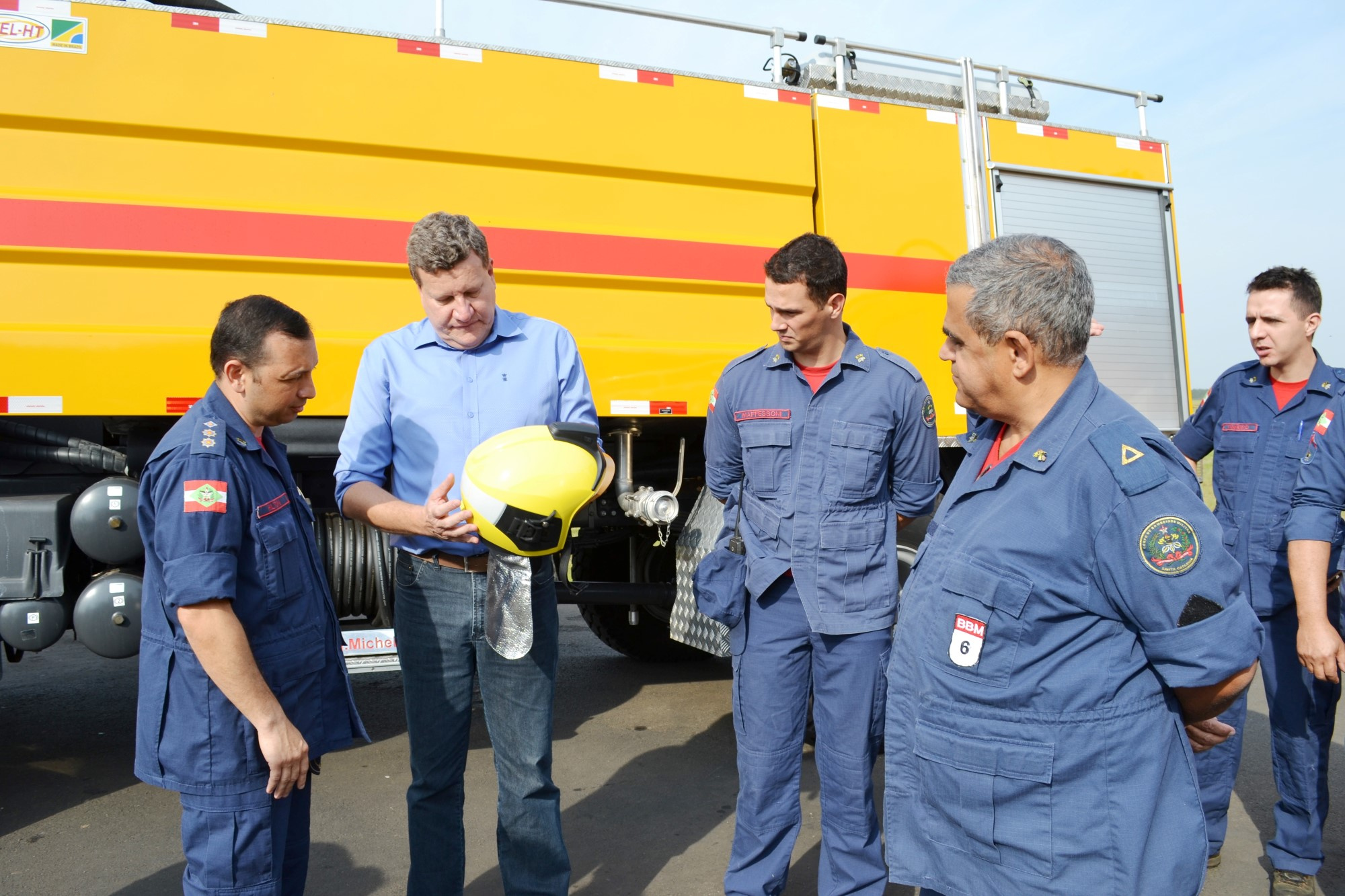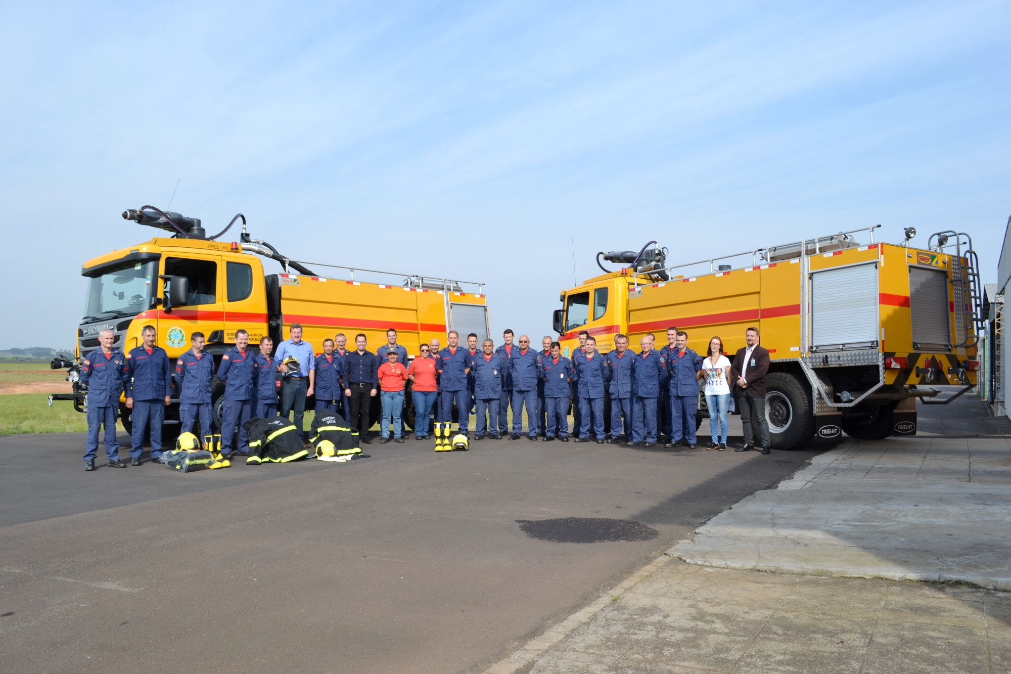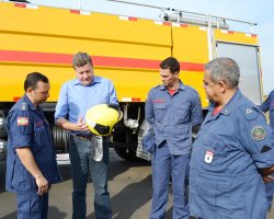 Hoje pela manhã estiveram reunidos o Prefeito Luciano Buligon, a equipe da Administração do Aeroporto, o Cel. Hilton e o novo efetivo. Os equipamentos adquiridos foram apresentados à equipe, entre eles, botas, calças e jaquetas antifogo, capacetes, ferramentas e sistemas de comunicação. Agora, tudo será documentado e remetido à ANAC para avaliação e homologação da nova categoria.