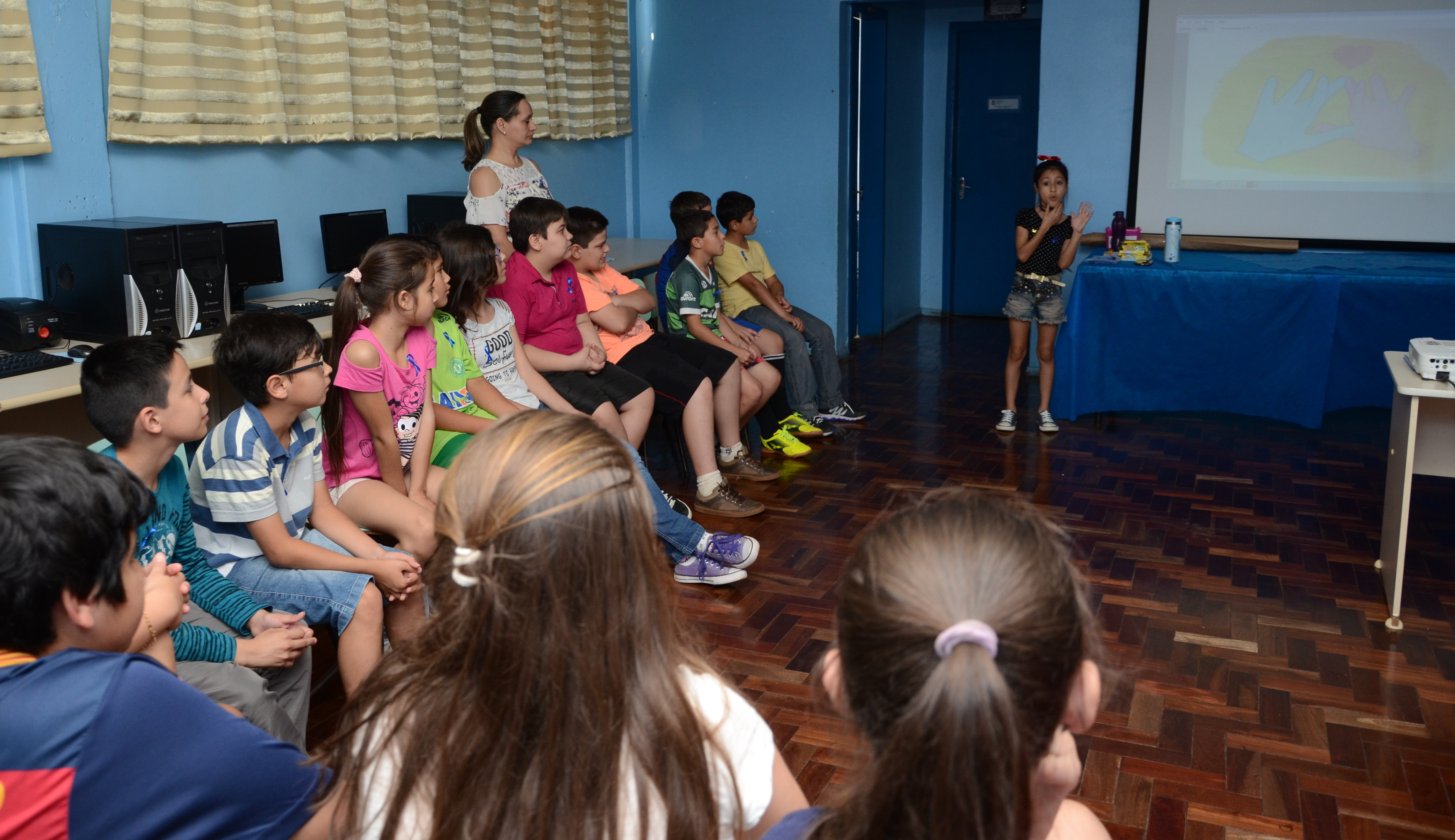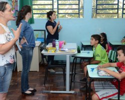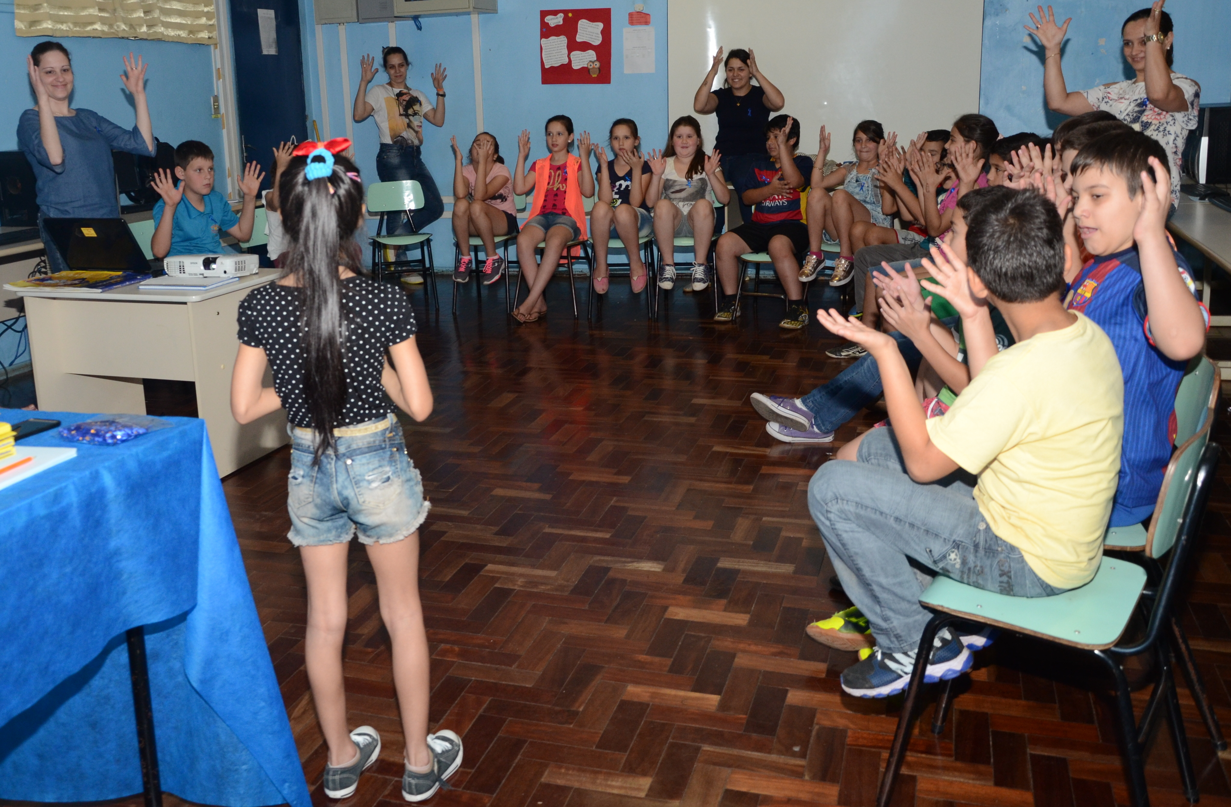 A Escola Básica Municipal Dilso Cecchin, no Bairro Santo Antonio, realizou na tarde de hoje (26), um momento especial voltado ao Dia Nacional do Surdo. Para comemorar a data foram realizadas atividades buscando desenvolver habilidades cognitivas e atitudinais dos alunos da turma da 4ª série, a qual tem uma aluna com surdez.