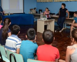 Para o aluno Christian Dos Santos Rade, de 10 anos, a atividade de hoje foi muito produtiva. Conheço a Ana Júlia desde a 1ª série e para nos comunicar com ela agora já é fácil porque já tivemos a oportunidade de aprender Libras. A pessoa ouvinte consegue falar com palavras e o surdo fala com as mãos. Para mim é algo a mais porque aprendendo Libras além de melhorar a comunicação, a gente pode ajudar as outras pessoas.