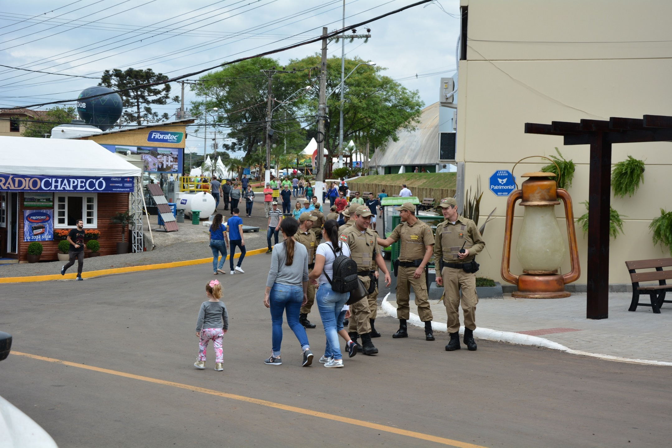 O Chefe da Comissão Social do 2º Batalhão da Polícia Militar de Chapecó, capitão Jefersson Fernando Cavalheiro, destaca o planejamento e o efetivo especialmente em lugares de risco e maior concentração de pessoas. A presença da polícia inibe a geração de ocorrências. Estamos com trabalho ostensivo com aproximadamente 120 homens e mais 80 em horários de maior movimentação em diferentes modalidades como patrulhamento tático, cavalaria, veículos, motos e profissionais velados. Na concha acústica, durante os shows contamos com a presença de uma viatura com o giroflex aceso que emite sinais luminosos intermitentes, explicou.
