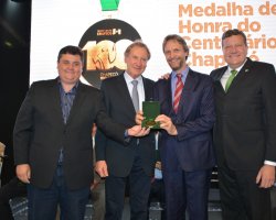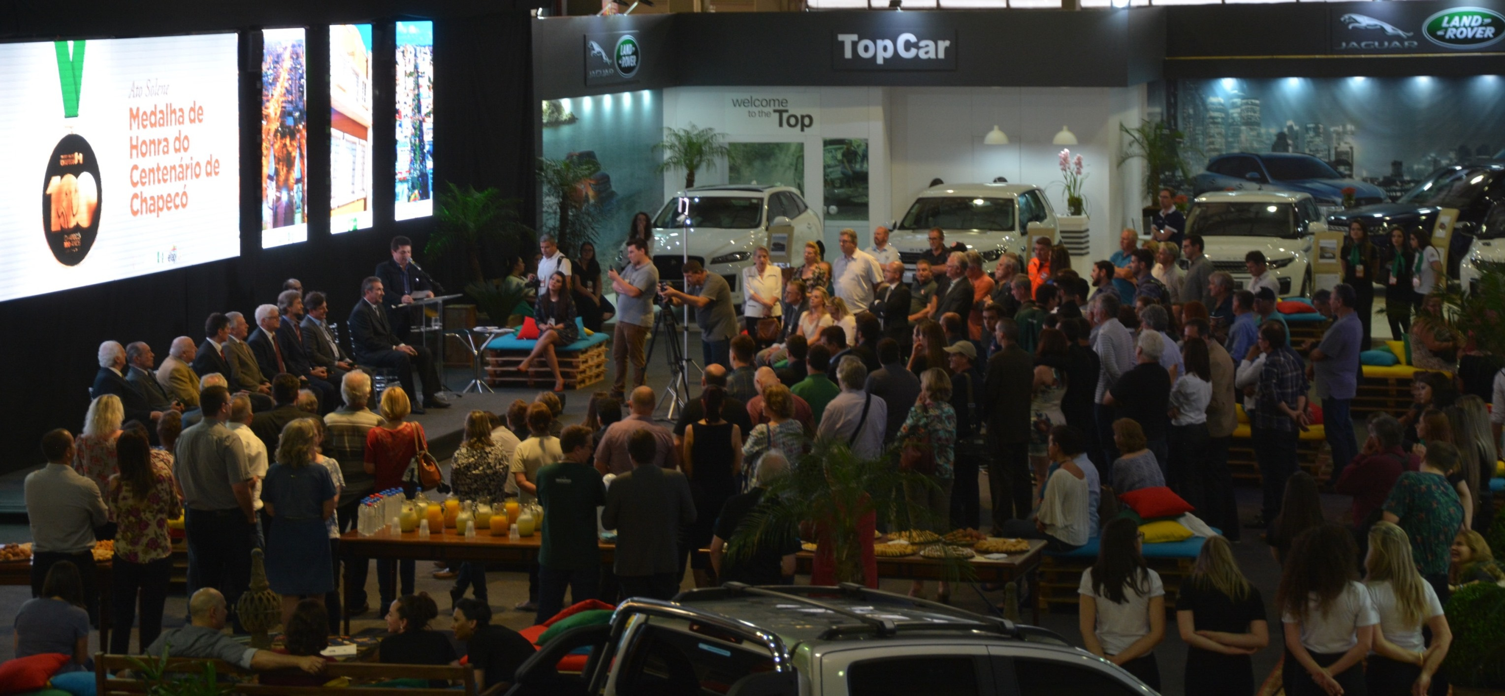 A noite desta quarta-feira (11) foi marcada por homenagens e emoção no Parque de Exposições Tancredo de Almeida Neves. Em uma cerimônia realizada no estande da Prefeitura, ex-prefeitos municipais receberam a Medalha de Honra do centenário de Chapecó. Instituida por meio do decreto nº 34.566, assinado pelo prefeito Luciano Buligon no dia 10 de agosto de 2017, a medalha faz parte das comemorações dos 100 anos e é uma forma de manter viva a memória histórica do município.