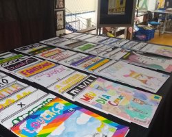 O laboratório 3 produziu um trabalho aliando o mundo das texturas à uma técnica de pintura em camadas de cores. Já, o laboratório 4, desenvolveu primeiramente vários estudos de cabeças, seus elementos e medidas, utilizando diversos materiais de desenho para após a compreensão, construir uma cabeça tridimensional com balão, jornal, cola e sucatas diversas.