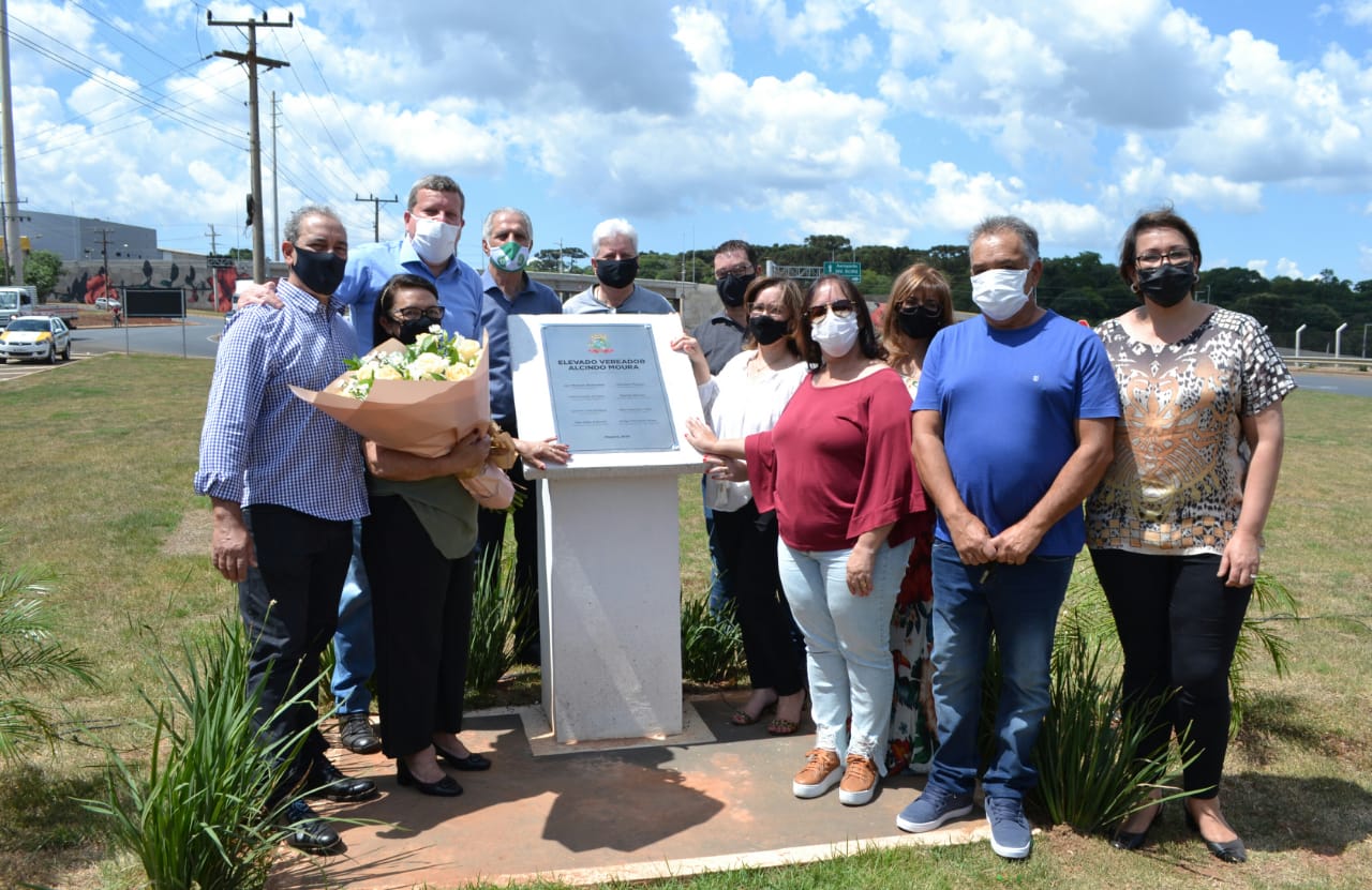 O ato foi marcado pela homenagem à família do ex-Vereador Alcindo Moura, que deu nome ao Elevado.