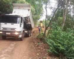 * Finalização dos serviços de manutenção das estradas na Linha Faxinal dos Rosas;