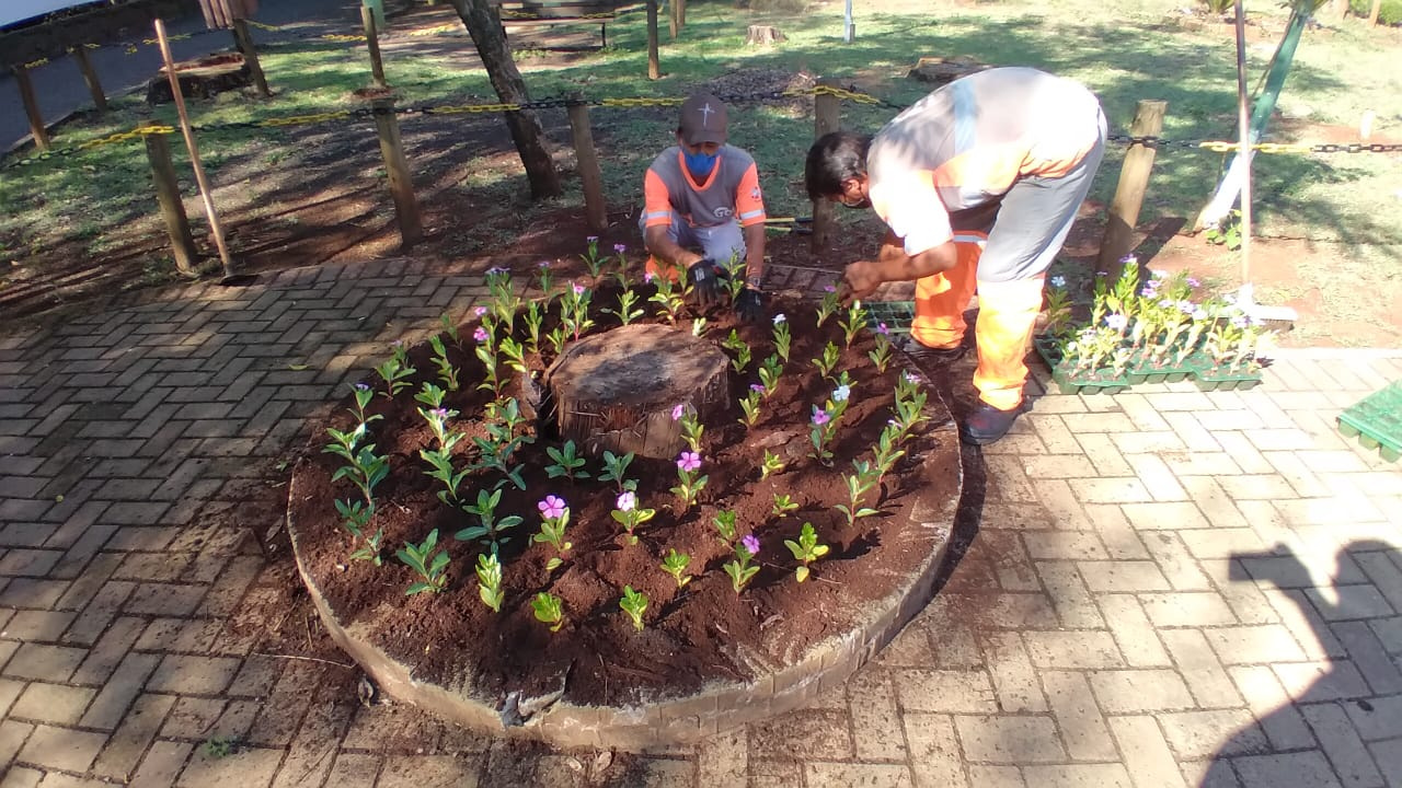 - Ajardinamento, plantio de grama e flores nos canteiros e rótulas localizadas nas Avenidas Fernando Machado, Nereu Ramos, Ruas Condá, Borges de Medeiros, Assis Brasil, Prédio do Tributos da Prefeitura e Parque Medellín;