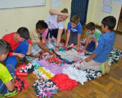 Quem acha que a produção de tapetes artesanais é uma ação que envolve somente habilidades manuais, está enganado. Na Escola Básica Municipal Nova Aurora, no Distrito de Marechal Bormann, por meio da confecção das peças as crianças estão aprendendo que com materiais alternativos, noções financeiras e um pouco de criatividade é possível reaproveitar.