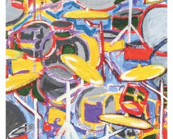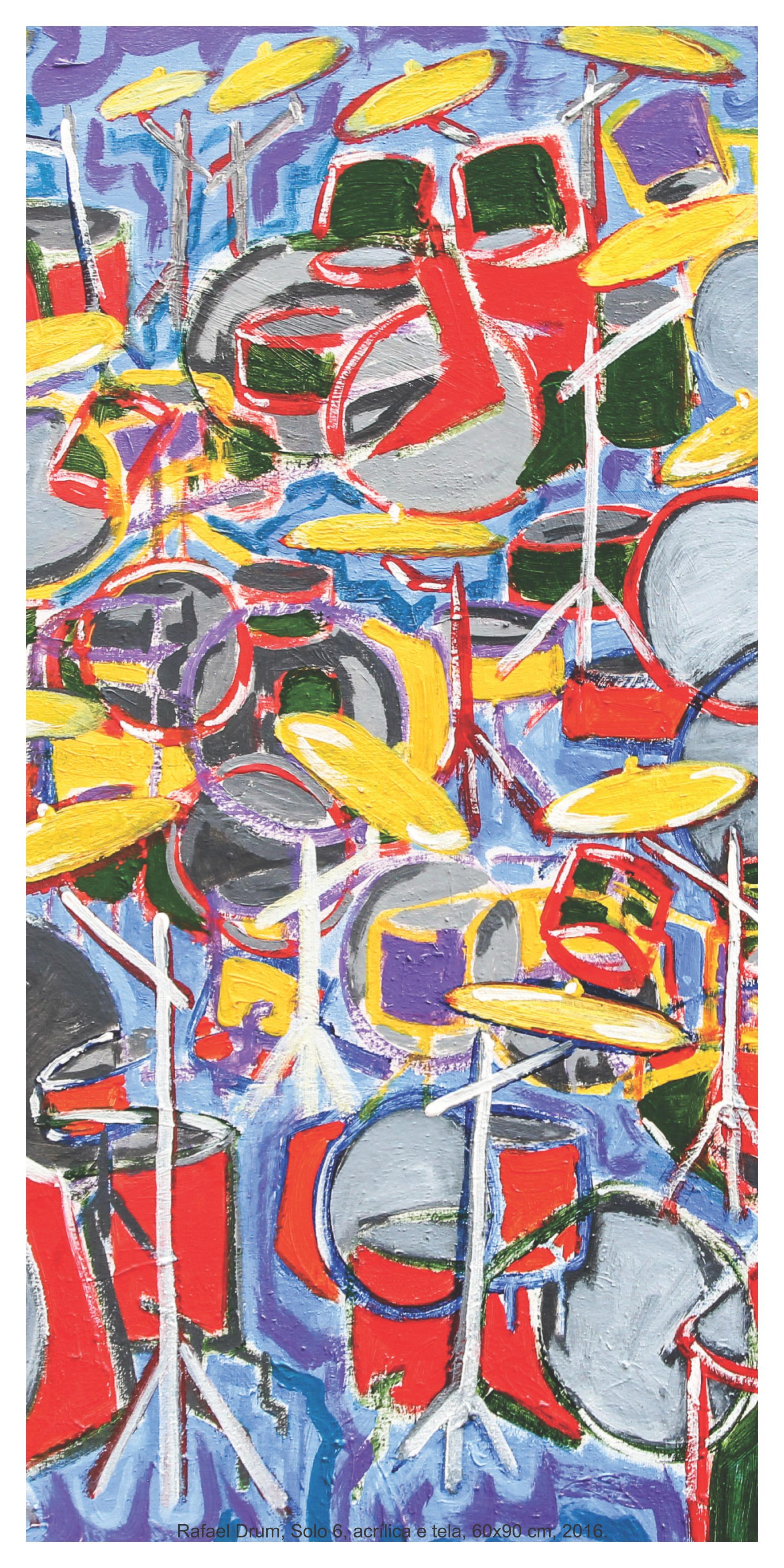 As obras transformam sensações musicais em formas visuais desmontadas, que trazem repetição, sobreposição e acúmulos, expondo o excesso de formas, cores e ritmos.