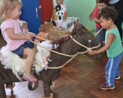 Independente da idade, da turma que estuda, ou da brincadeira preferida, as crianças convivem com as diversidades, sendo incentivadas a respeitar as diferenças e a cuidar do outro. O brincar é atividade fundamental para as crianças pequenas. É brincando que elas descobrem o mundo, se comunicam e se inserem em um contexto social. Brincar é um direito da criança, além de ser de suma importância para seu desenvolvimento social e cognitivo. É com os relacionamentos construídos na infância a partir da brincadeira, que elas aprendem a importância de respeitar o outro, enfatiza a Secretária de Educação, Sandra Galera.