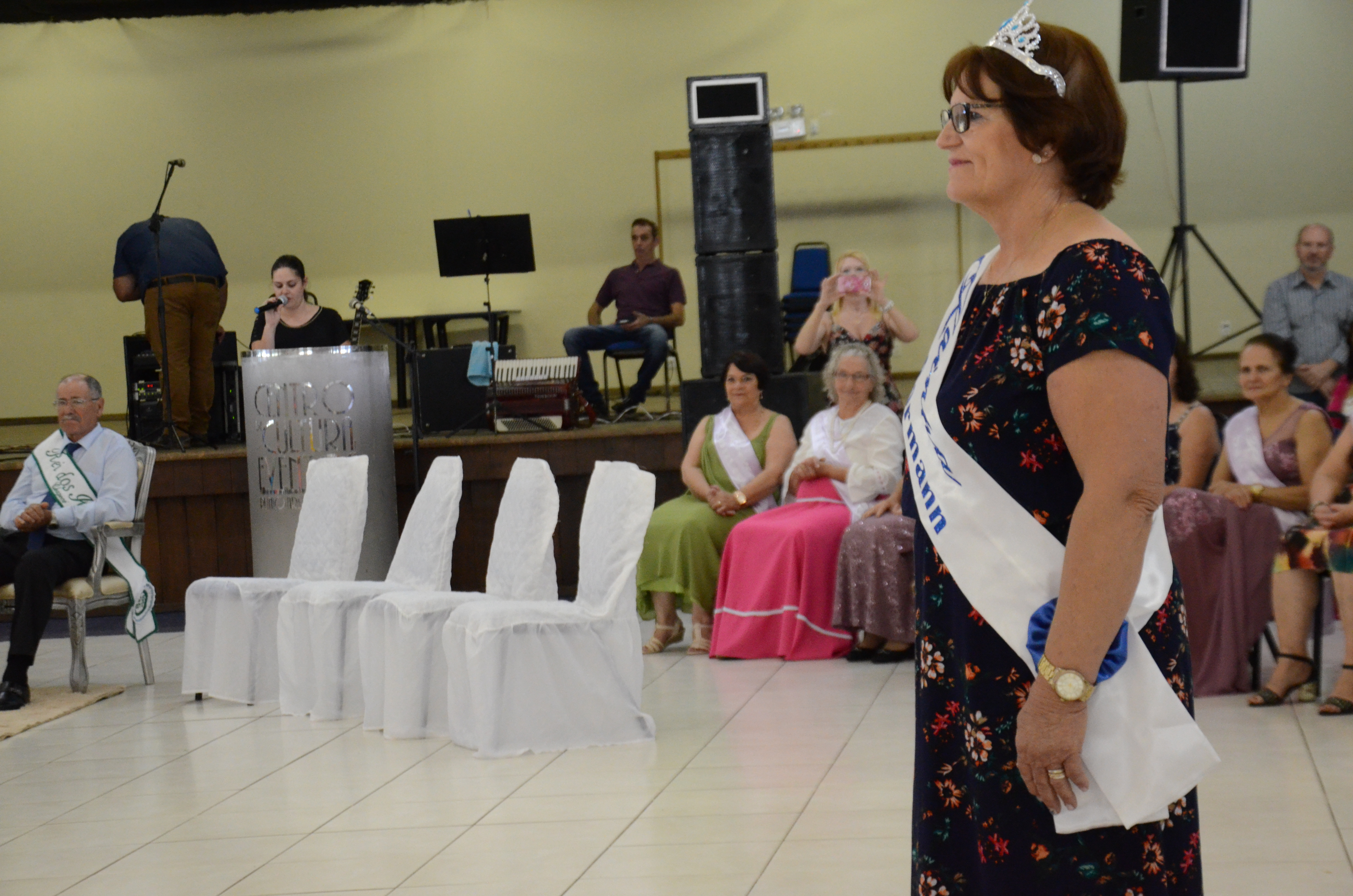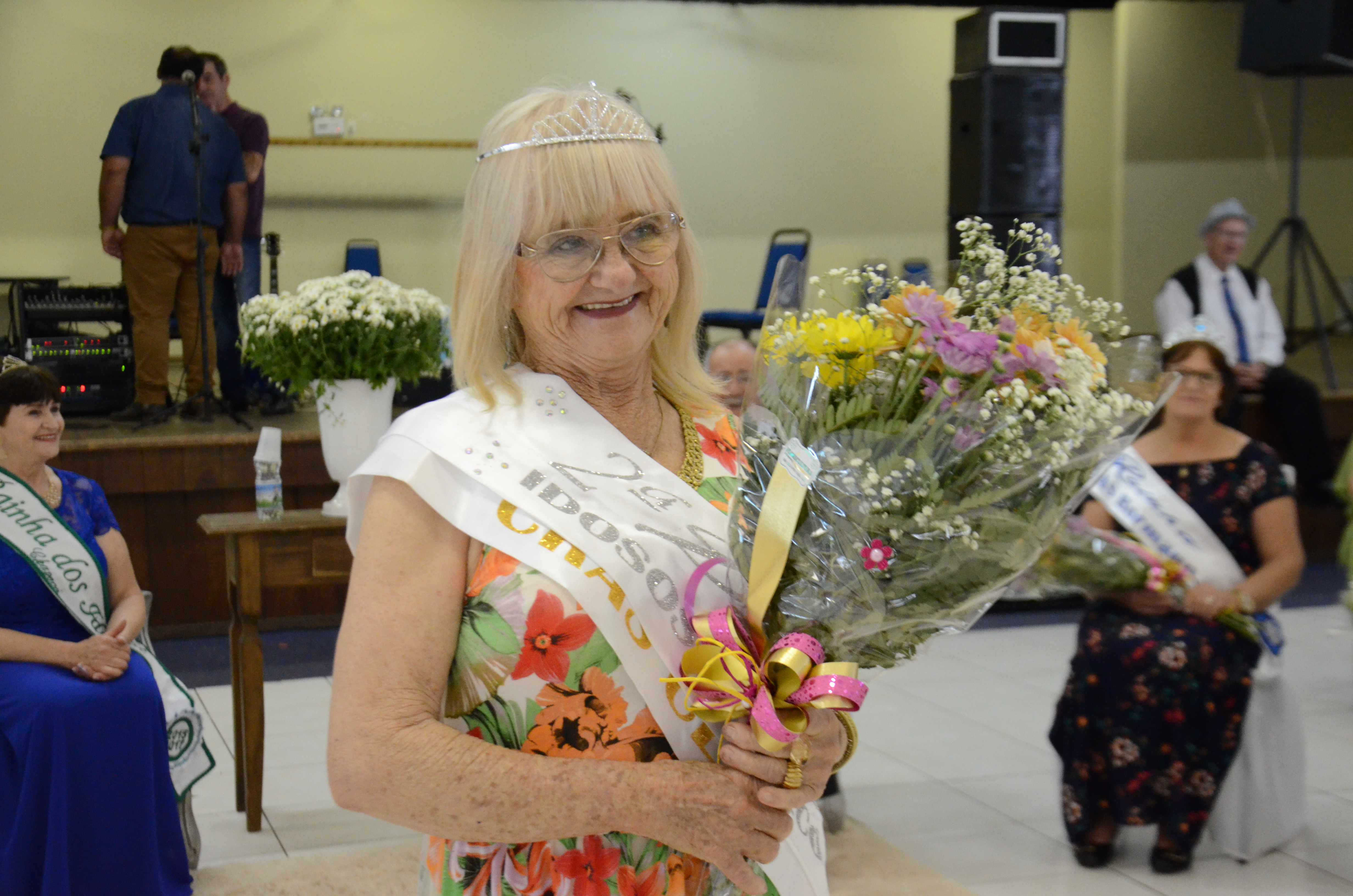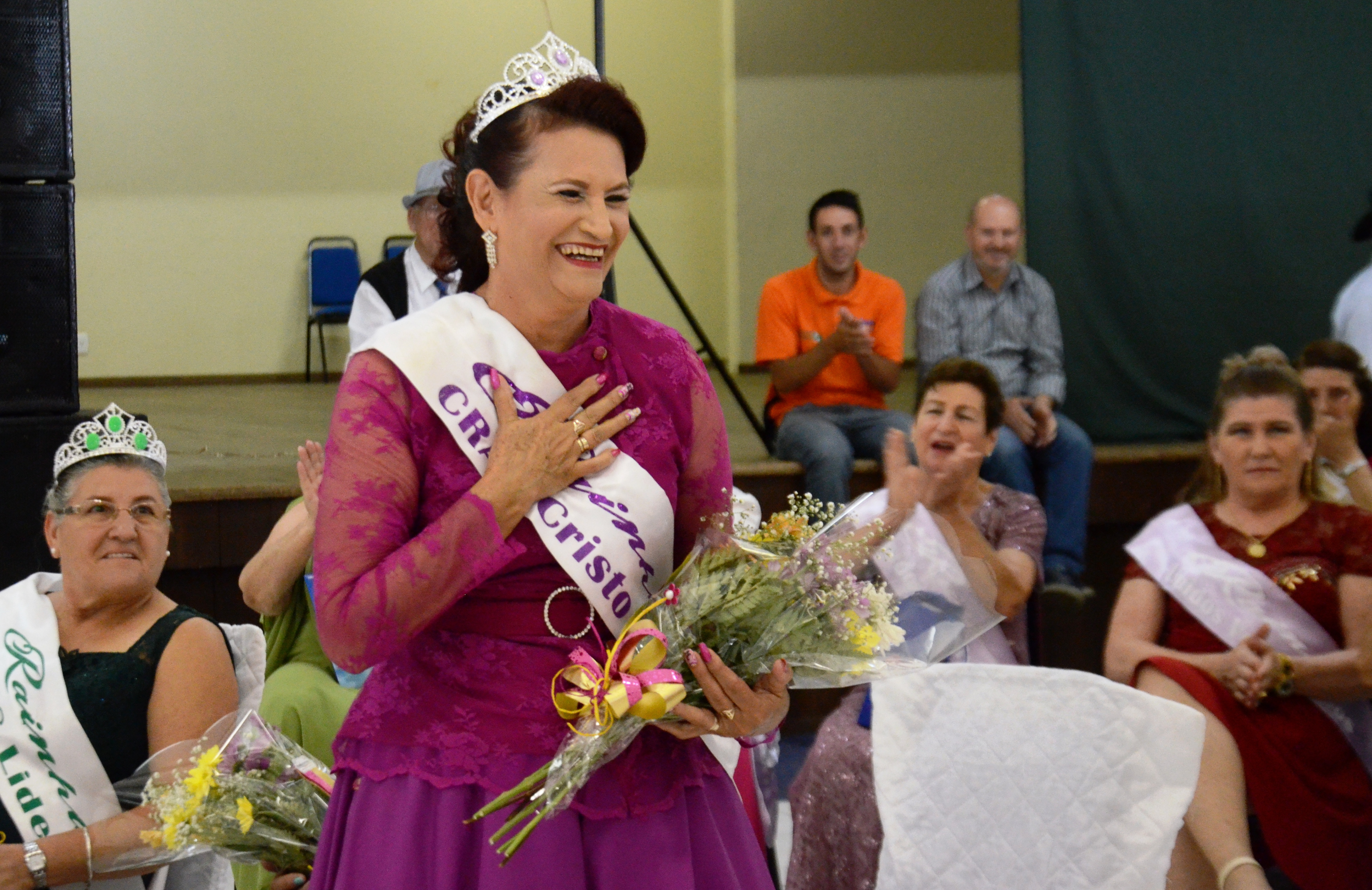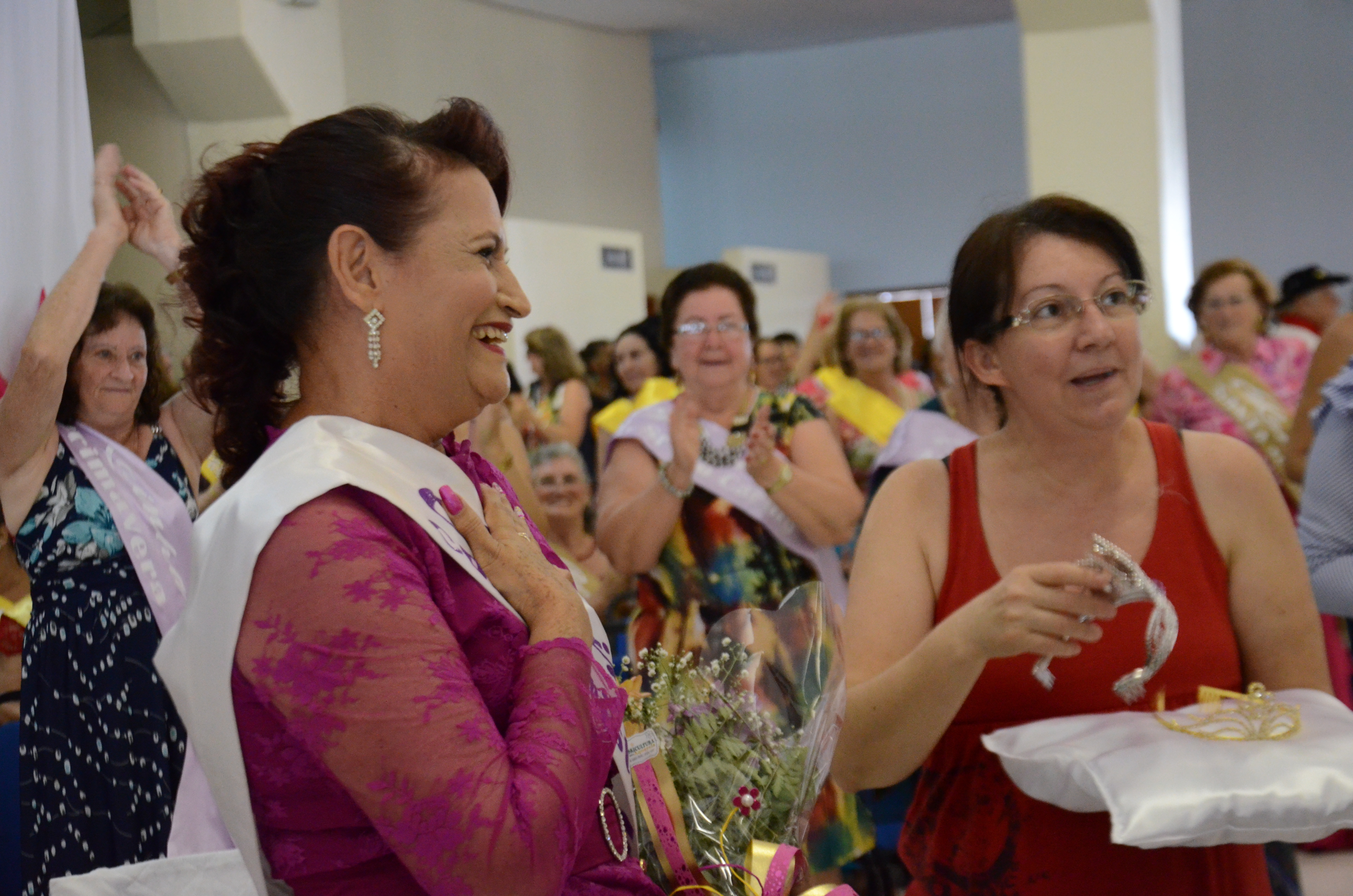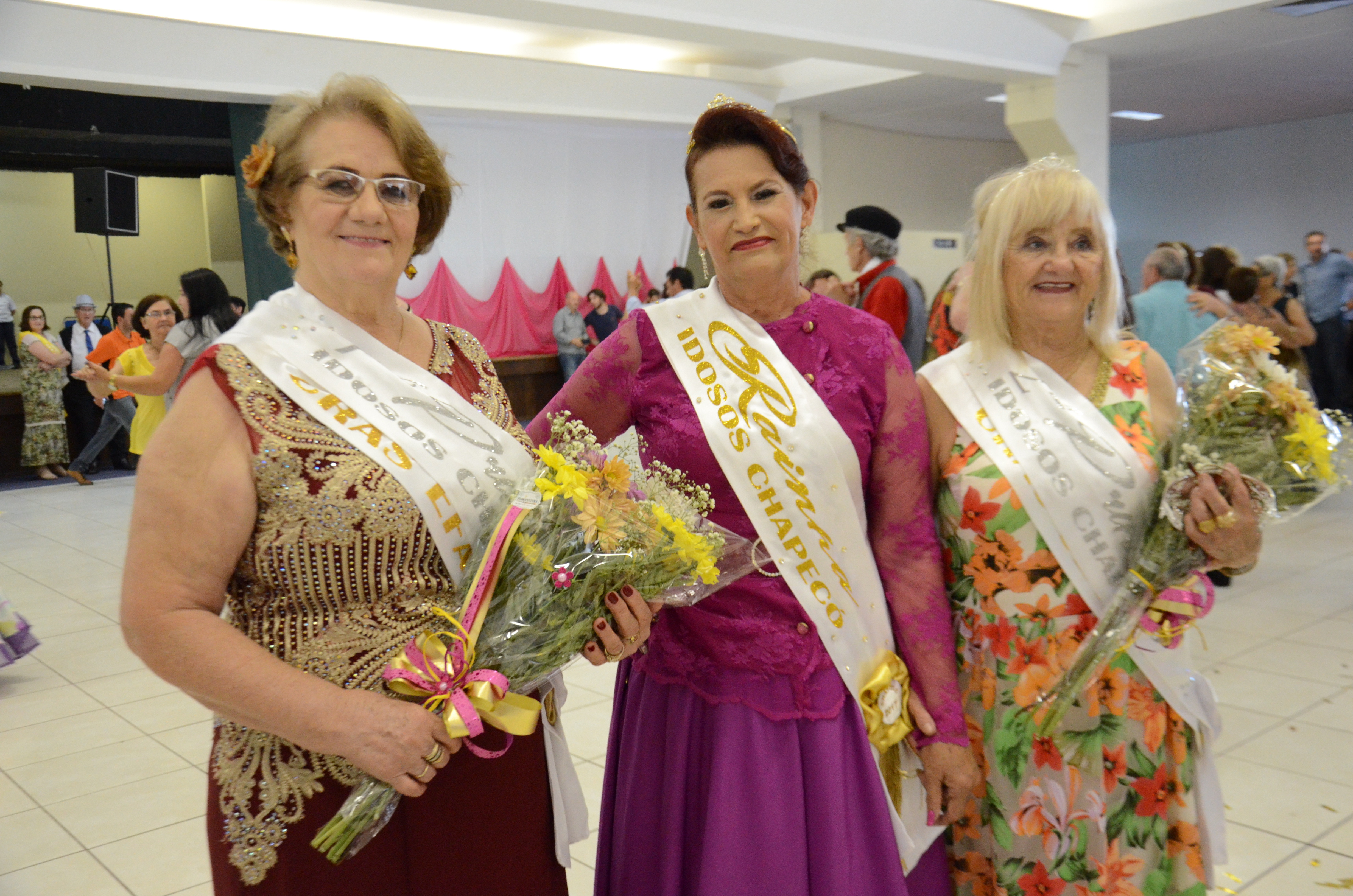 Foram coroadas nesta sexta-feira (17) a nova Rainha e Princesas dos Idosos de Chapecó. Noema Teixeira da Rosa foi eleita 2ª Princesa; Inelde Predebon, 1ª Princesa e Maria Lira de Queiroz a Rainha dos Idosos de Chapecó.