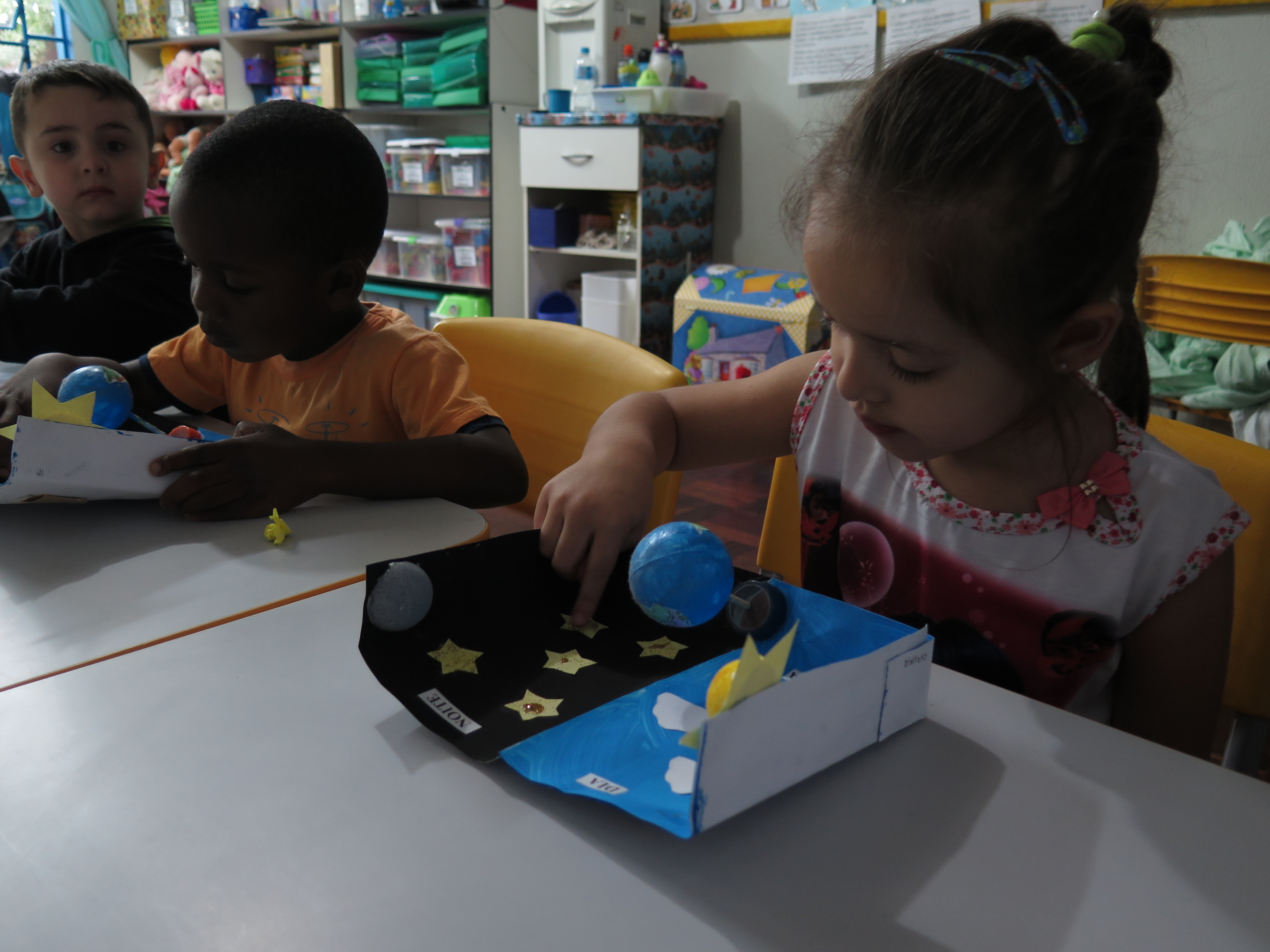 A ideia em trabalhar a temática surgiu após a professora Andrea Portilliotti observar a inquietude dos seus alunos, seus interesses e curiosidades pelo céu. A partir daí foram desenvolvidas inúmeras atividades sobre a cidade, os mapas, o globo, o sistema solar e o tudo que o compõe. As ações, além de ajudarem os pequenos a se localizarem no nosso planeta, trouxeram muitas novidades.