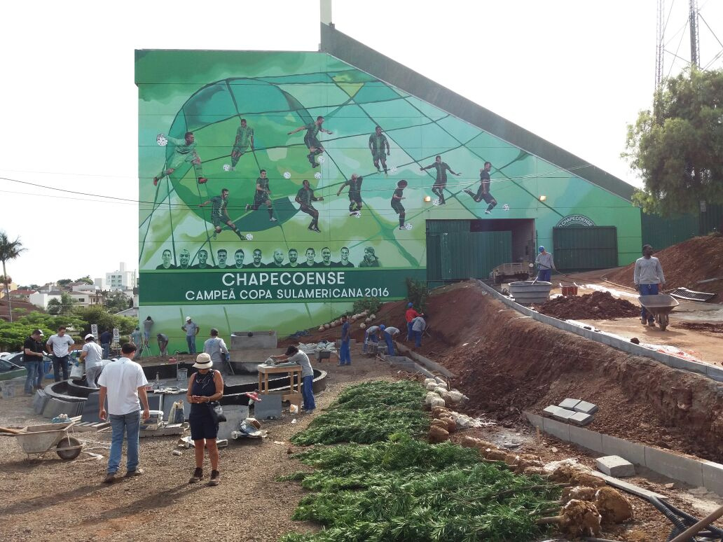 A execução das pinturas nos espaços públicos foi autorizada pelo Município e coordenada pela Associação Chapecoense de Futebol, com o apoio das tintas Killing e Coral.
