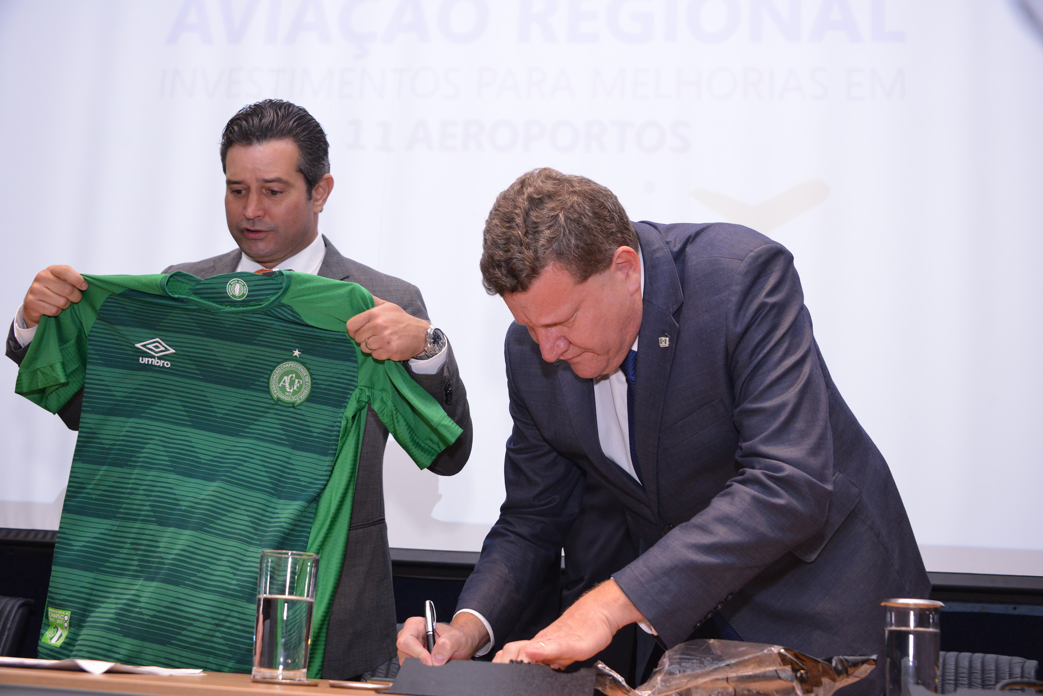 Na solenidade, o Ministro Maurício Quintella assinou 11 Termos de Compromisso com aeroportos regionais, totalizando sete Estados que vão receber R$ 212,4 milhões para a execução de obras de reforma, ampliação, aquisição de equipamentos, sinalização e melhoria da infraestrutura desses terminais. Os recursos serão provenientes do Ministério dos Transportes e, no caso dos aeroportos de Tocantins, Goiás, São Paulo e Santa Catarina (Chapecó) haverá uma contrapartida por parte dos governos municipais (TO e GO) ou estaduais (SP e SC).