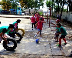 Por isso os jogos são importantes instrumentos de desenvolvimento de crianças e jovens na educação. Longe de servirem apenas como fonte de diversão, o que já os torna importantes, propiciam situações que podem ser exploradas de diversas maneiras educativas. Foi a partir dessa visão que a professora Viviane Thiel, da Escola Básica Municipal Jacob Gisi, situada no bairro Engenho Braun, percebeu a necessidade de fortalecer os vínculos e o trabalho em grupo através de jogos cooperativos com as turmas do 1º ao 5º ano.