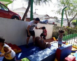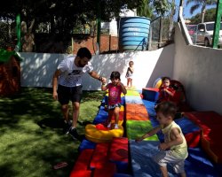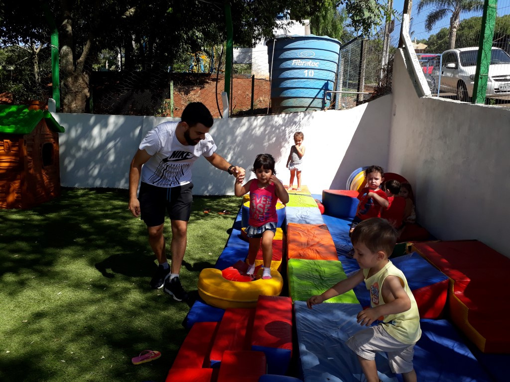 De acordo com o professor Keyth Yagoh da Silva dos Santos, o objetivo dessa atividade foi conhecer e sentir as partes do seu corpo a fim de familiarizar-se com elas e valorizar suas funções, explorando diferentes situações criando novas formas de movimentar-se ampliando as formas de locomoção e promovendo a maneira correta de movimentar-se seus limites e possibilidades do seu corpo. Sabermos que crianças desta faixa etária estão reconhecendo o corpo e descobrindo as suas possibilidades, quero disponibilizar situações em que as criança explorem de diferentes maneiras estas possibilidades em diferentes espaços e ambientes, explicou. Os alunos aprendem através das brincadeiras. Gosto daqui porque dá pra virar cambalhota e a gente não se machuca, comentou o aluno Luiz Tonello dos Santos de 03 anos.