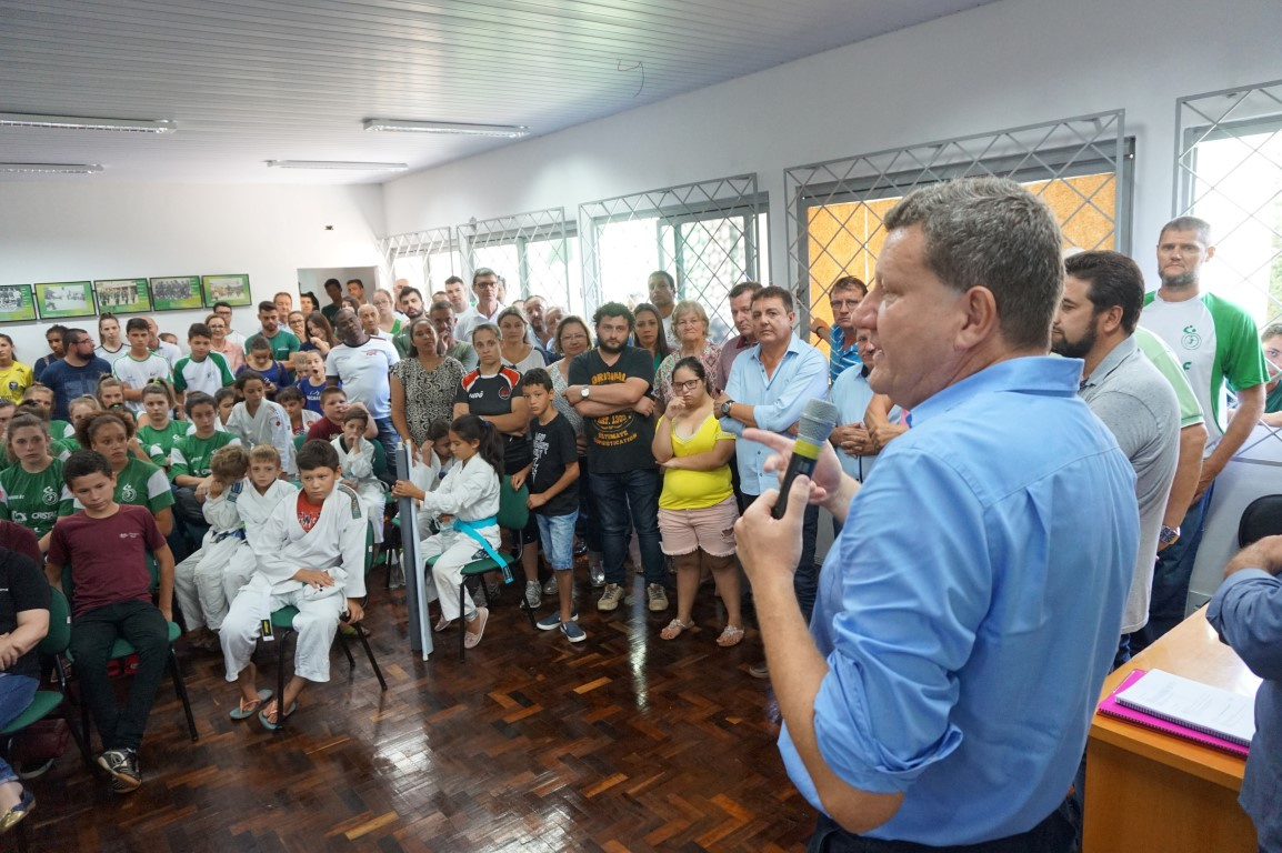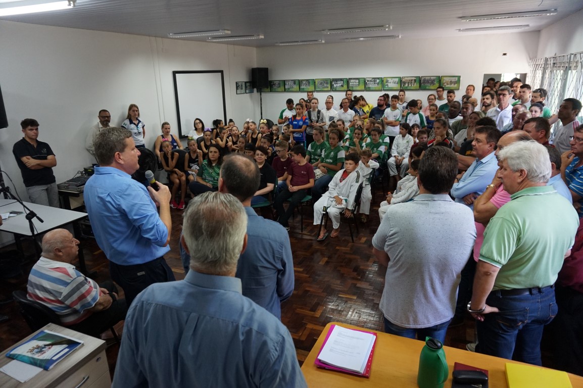 O professor Rogério Klos que falou em nome dos técnicos reviveu o que o Verdão presenciou em termos de esportes e o atleta Marco Antônio, do Karatê, destacou sua felicidade e de demais atletas em ter um espaço totalmente voltado para o desenvolvimento do esporte. Eder Popiolski da Pró Esporte mostrou a necessidade das modalidades terem um espaço adequado e relatou dificuldades de recursos, face a nova legislação.
