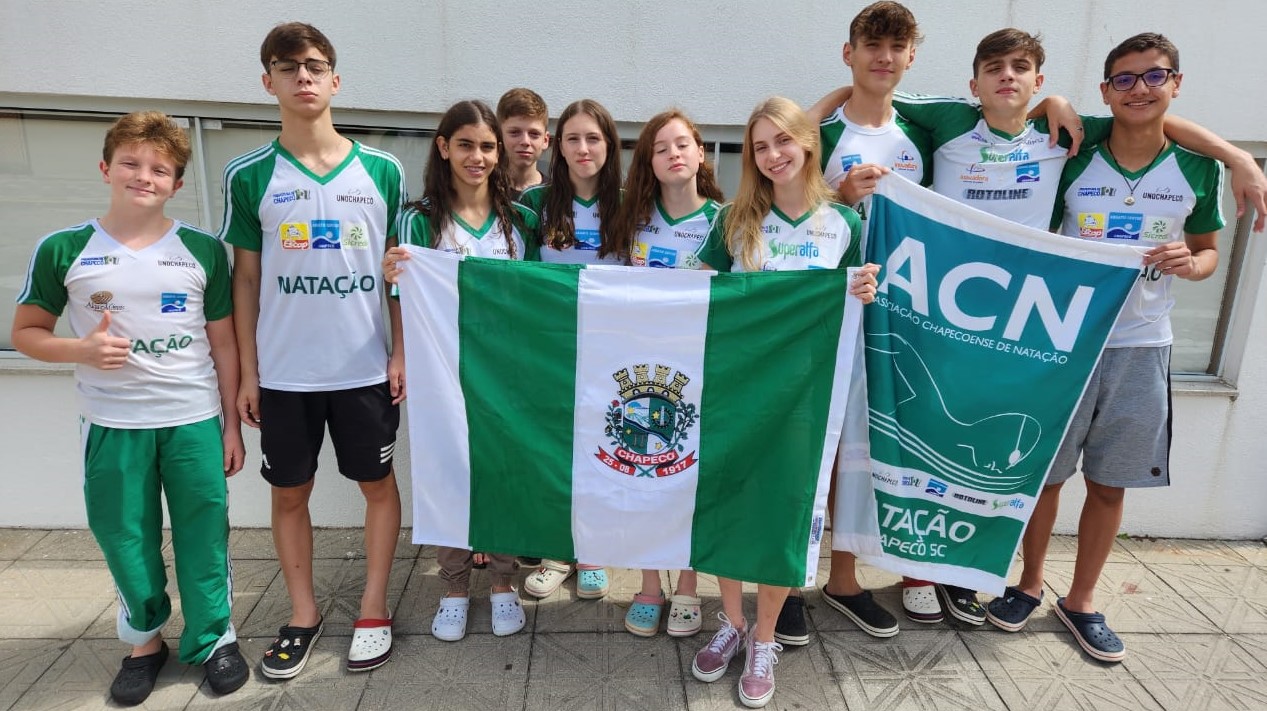A equipe da Associação Chapecoense de Natação - ACN / AQUATIC CENTER / UNOCHAPECÓ / DEMOURA VIAGENS / PMC, disputou no sábado (25) o Campeonato Catarinense Fita Azul de Velocidade - Troféu Eduardo Deboni. A competição realizada no Clube Doze, em Florianópolis, reuniu 364 nadadores com idades a partir de 13 anos, representando 17 equipes catarinenses.