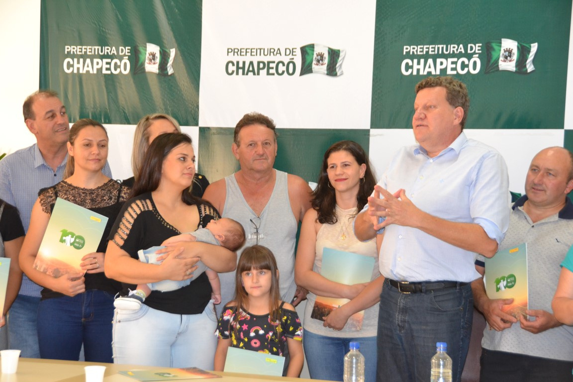 Na quinta-feira (12) a Administração Municipal, por meio da Diretoria de Regularização Fundiária entregou 20 escrituras para famílias do Bairro Efapi, loteamento Unochapecó, que concluíram o Processo de Regularização Fundiária. O trabalho iniciou em 2011 através de Acordo Judicial, conduzido pela Procuradoria Geral do Município, com o objetivo de solucionar processos de usucapião proposto pelos moradores, que estavam no local há mais de 20 anos. Com autorização da Lei Complementar Municipal nº 6.338, de 14 de dezembro de 2012, foi possível aprovar o Loteamento e registrá-lo em 01 de outubro de 2015, momento em que o município deixou os lotes aptos para a transferência.
