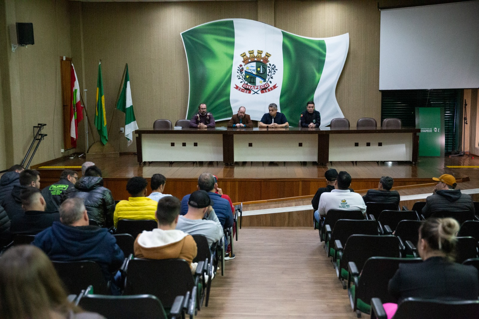 A Prefeitura de Chapecó vai limitar os horários de funcionamento dos estabelecimentos denominados tele beer e também o consumo de bebida alcoólica em vias públicas. As medidas foram definidas em uma reunião realizada na tarde desta terça-feira, no auditório da Prefeitura, com a participação de cerca de 20 empresários, o prefeito João Rodrigues, o Promotor de Justiça Simão Baran Júnior, o Procurador Geral do Município, Mauro Sabino Von Gehlen, e o comandante da Guarda Municipal, Roger Lima.