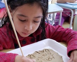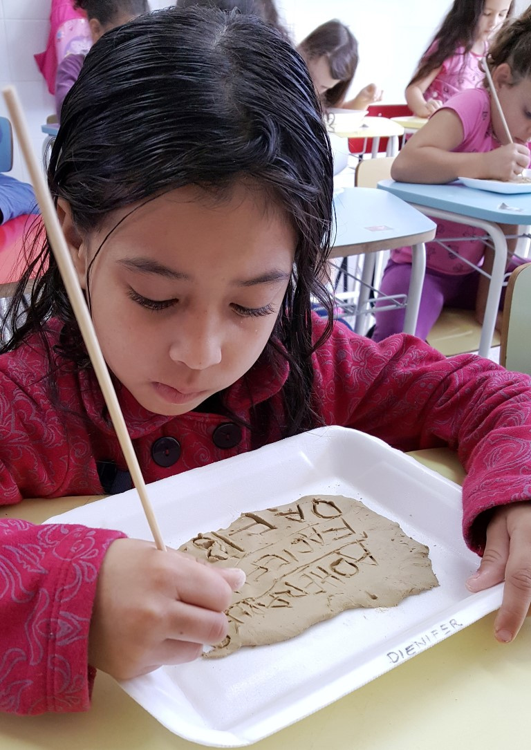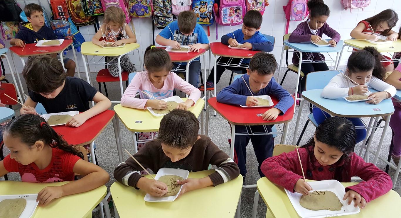 A professora Simone Mazon explica que com esse projeto a ideia era que as crianças identificassem as letras. Durante a realização dos trabalhos, houve a necessidade de embasar o projeto com a história da escrita, porque através dela as crianças iriam adquirir novos conhecimentos, compreender e tornar significante a vivência diária com as letras, reconhecendo sua função social, explicou.