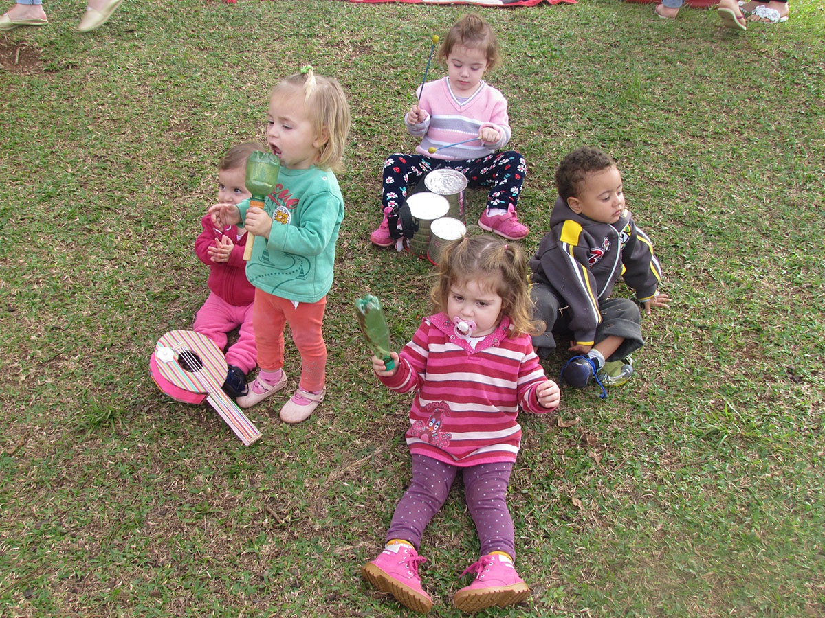 De acordo com a professora Eliane de Mello, num momento de conversa com os pais foi solicitado aos mesmos para confeccionar junto com seus filhos um instrumento musical de sua preferência, incentivando o envolvimento da família. Fiquei muito feliz e satisfeita, houve uma socialização da turma com seus diferentes instrumentos. Este projeto não propõe a ensinar manuseio técnico de um instrumento musical, mas despertar a musicalização. Pretendemos criar um vínculo entre a música e a criança e principalmente desenvolver na criança o gosto pela música, explica.