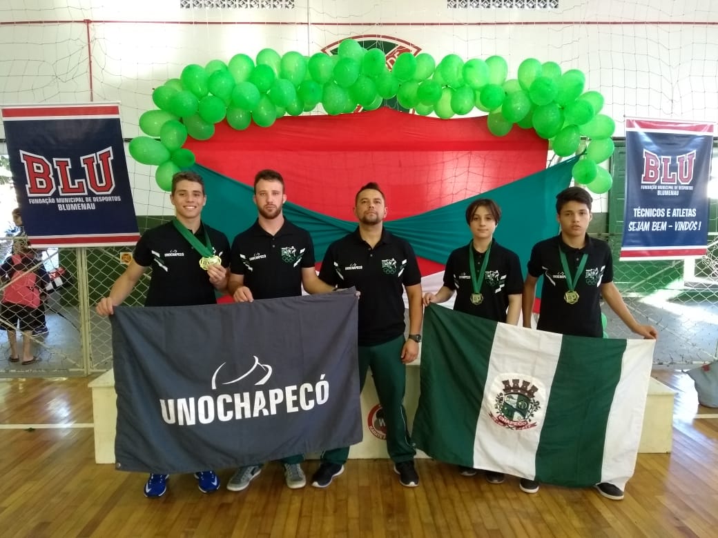 Medalhas e títulos são o resultado que a Equipe da Unochapecó/Prefeitura de Karate, trouxe da Taça Santa Catarina, disputada na Associação Vasto Verde, em Blumenau, no final de semana. As conquistas vieram através de caratecas que fazem parte do Projeto Atleta do Futuro, desenvolvido pela Prefeitura através da Secretaria de Esportes, Juventude e Lazer SEJEL.