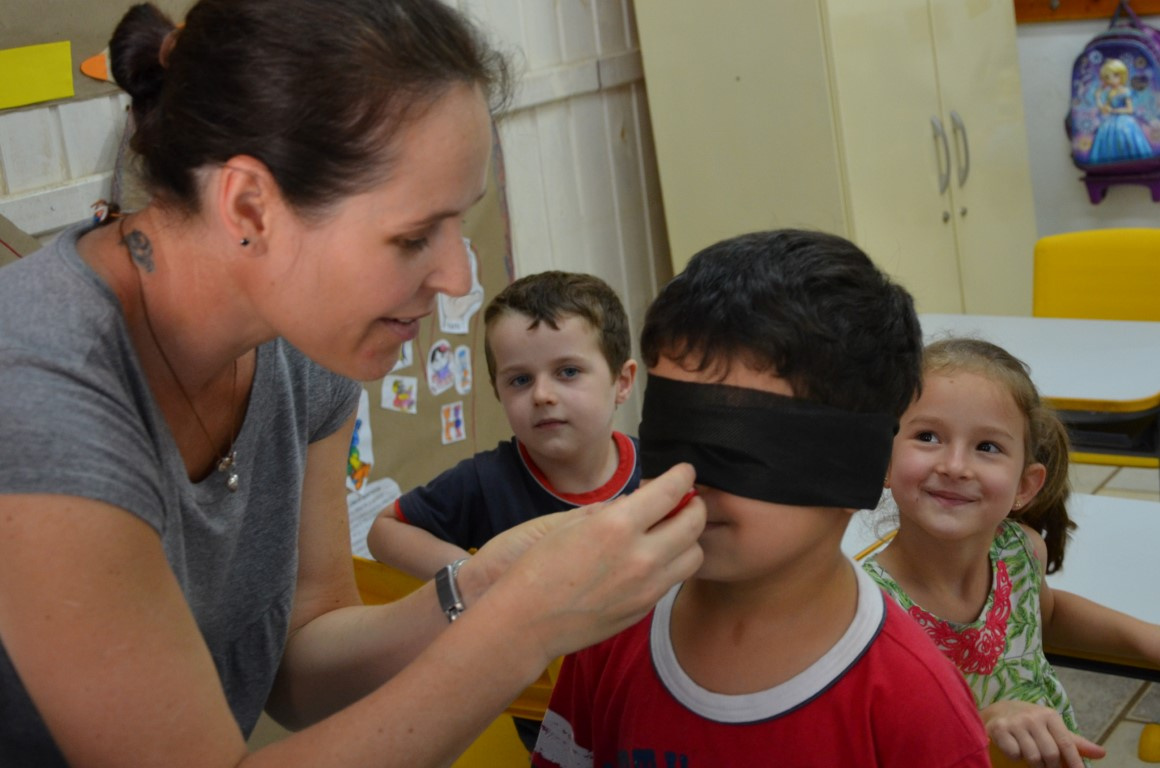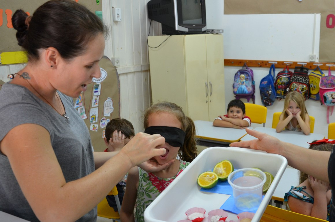 A professora destacou ainda que foi realizada a atividade da caixa mágica, que permite identificar as diferentes texturas e formas. A faixa etária deles permite que percebam que o corpo deles está crescendo. A caixa dos sentidos faz com que apurem o sentido do tato e para aguçar o olfato e o paladar, usamos a experimentação dos cheiros e gostos com os olhos vendados. É gratificante, pois, eles compreenderam o funcionamento do corpo de forma simplificada, explicou.