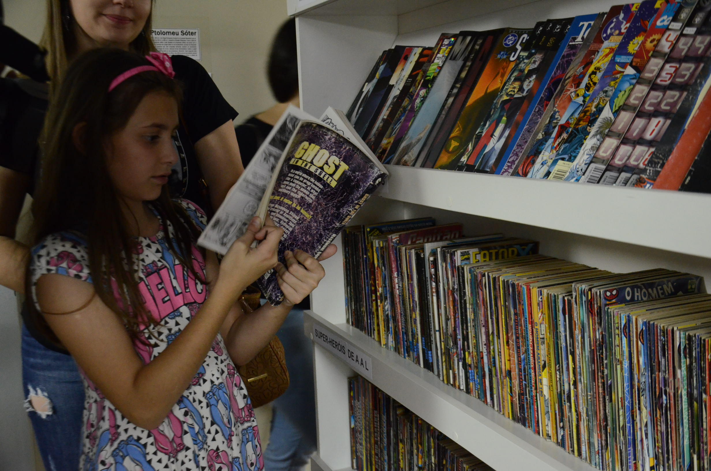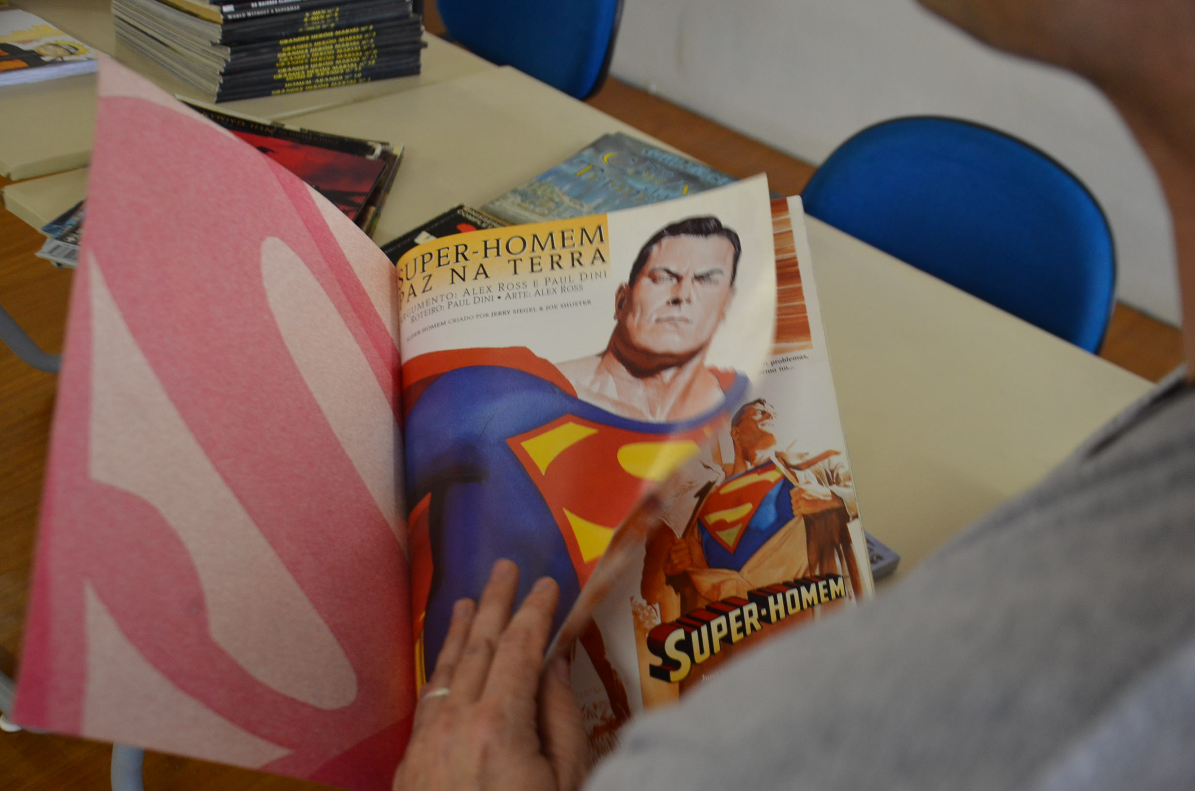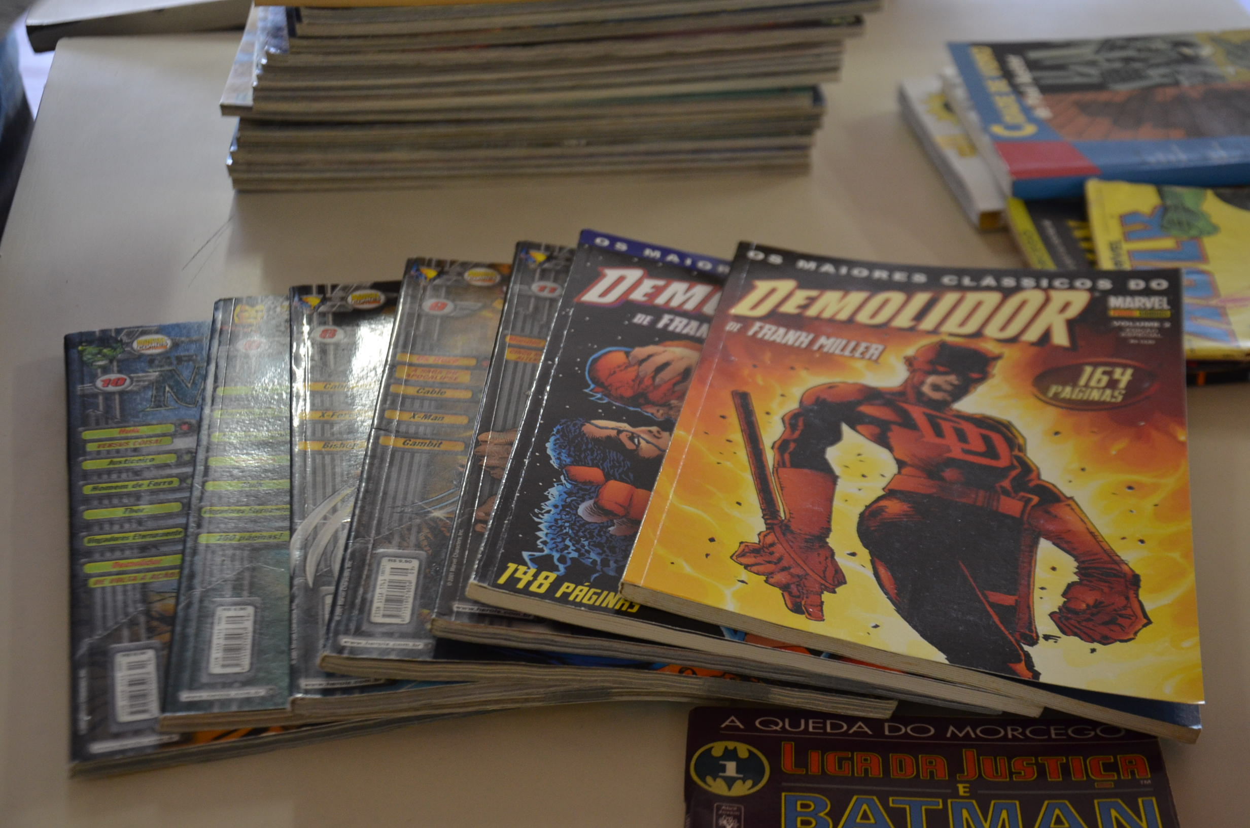 Dentre as cerca de 2 mil peças da Gibiteca disponíveis para consulta no local, obras como a série Marvels ilustrada em aquarela pelo artista norte-americano Alex Ross e originais do Frank Miller, como 300 de Esparta e Batman, o Cavaleiro das Trevas, integram o acervo. Além de títulos expressivos como o Hulk e o Homem Aranha, com mais de 100 revistas de cada um dos personagens.Aos poucos, de acordo com a equipe da escola, todos os exemplares serão catalogadas, e com o passar do tempo será feito o empréstimo dos livros.