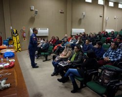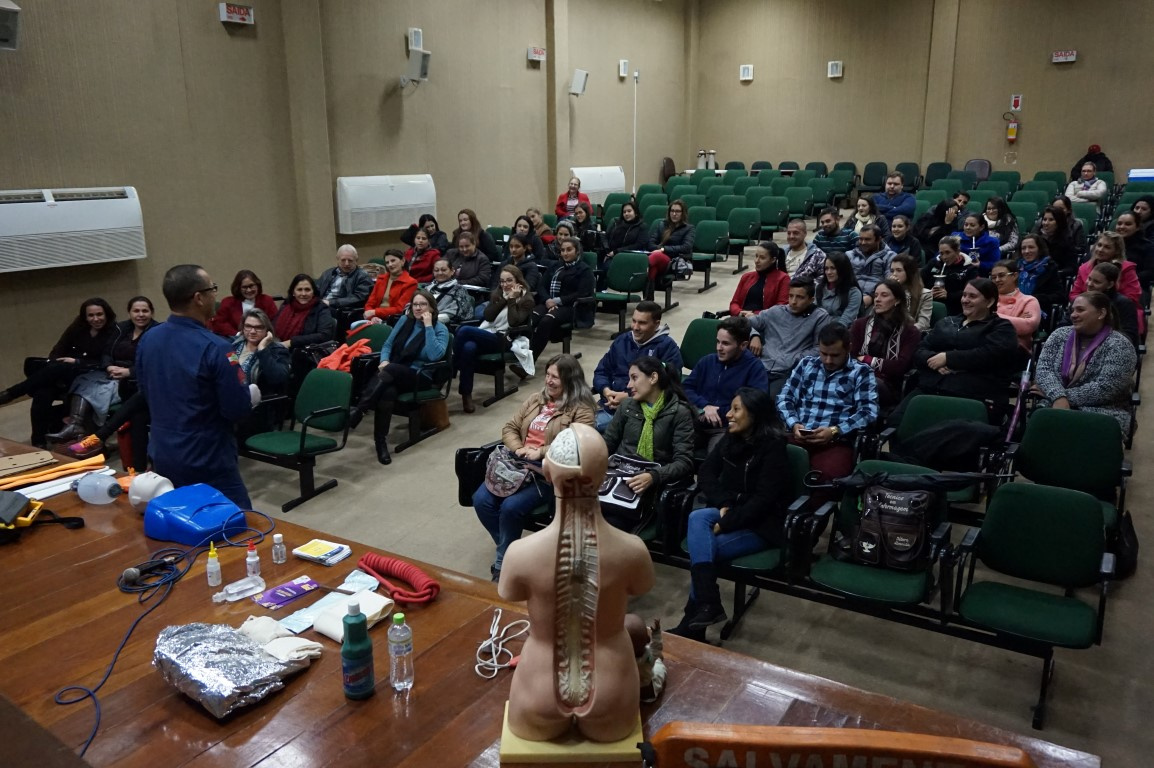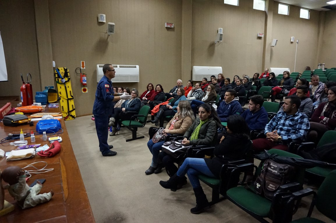 O atendimento de urgência e emergência é essencial para manutenção da vida, tornando-se necessário a capacitação e a educação continuada das equipes de saúde em todos os âmbitos da atenção. Por isso, na terça-feira (05) aconteceu, no auditório da Prefeitura, uma capacitação para cerca de 60 profissionais que atuam no Ambulatório de Lesões de Pele da Secretaria de Saúde de Chapecó. A capacitação foi realizada pelo Sargento Valter Luciano Huning, do Corpo de Bombeiros Militar de Chapecó, com o objetivo de dar melhor qualidade e resolutividade nos atendimentos junto aos usuários do Sistema Único de Saúde - SUS.