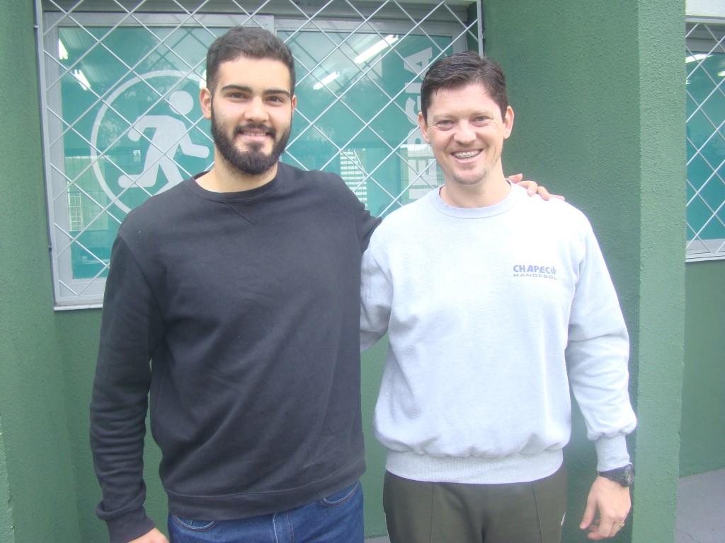 Rangel da Rosa, atleta da Seleção Brasileira de Handebol esteve em Chapecó na última sexta-feira (15). O goleiro, de 22 anos, foi ao Complexo Esportivo do Verdão visitar um de seus primeiros professores e incentivadores da carreira handebolista, Professor Mauro Johann, técnico do Handebol Masculino de Chapecó. Entre uma conversa e outra realizaram gravação para um canal de TV.