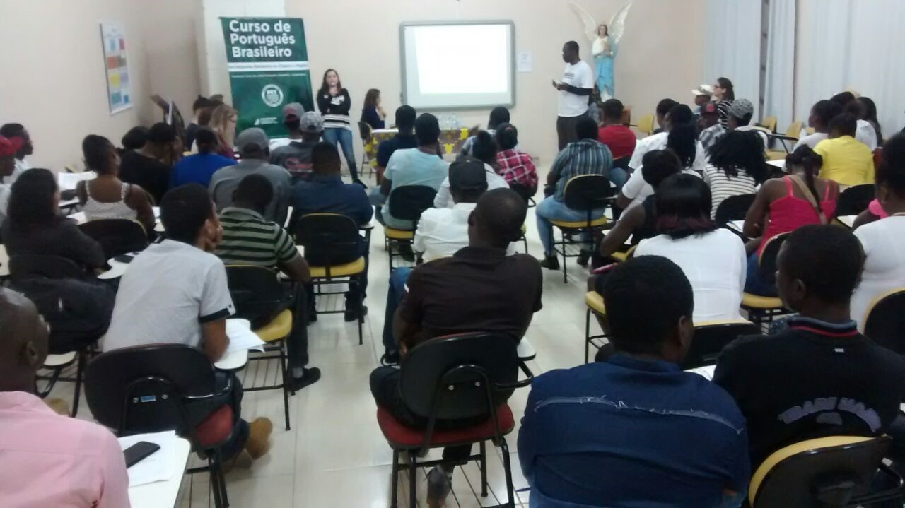 Outra palestra aconteceu no sábado (23) e foi direcionada para migrantes. Ela aconteceu na Igreja Matriz no Centro de Chapecó e reuniu cerca de 150 pessoas. Os técnicos da SEASC, Katia Regina Carlesso (gestão da Proteção Básica) e Emanuelle Borsoi (Coordenadora do CREAS II) falaram também sobre os serviços oferecidos pela SEASC e a forma de acesso. A SEASC foi convidada pela Pastoral do Migrante de Chapecó, que realizará a 33ª Semana do Migrante. O objetivo da palestra era apresentar a SEASC e prestar informações aos migrantes, de quais são os serviços prestados, bem como, esclarecer quais os locais de atendimento e os benefícios socioassistenciais para assim cada vez mais a população ter conhecimento e acesso.