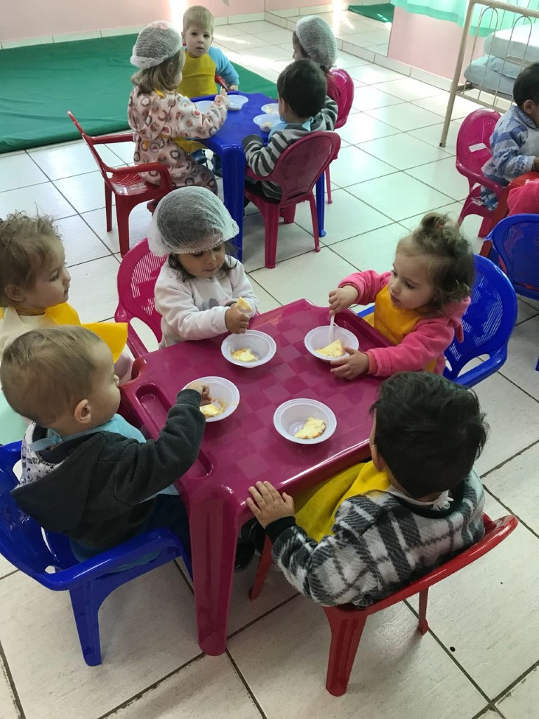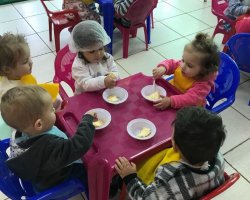 Sentir e apreciar diferentes alimentos com o intuito de perceber a importância de uma alimentação equilibrada e diversificada, além de explorar as diferentes sensações promovidas pelos órgãos dos sentidos a fim de identificar diversos tipos de alimentos, sabores, texturas e cheiros dos mesmos. Este projeto foi desenvolvido pelo Ceim Alegria do Saber do Bairro Efapi, com a turma do berçário.